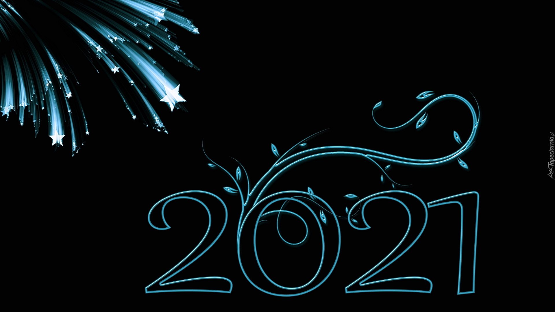 Edytor tapety: Data 2021 i fajerwerki na ciemnym tle