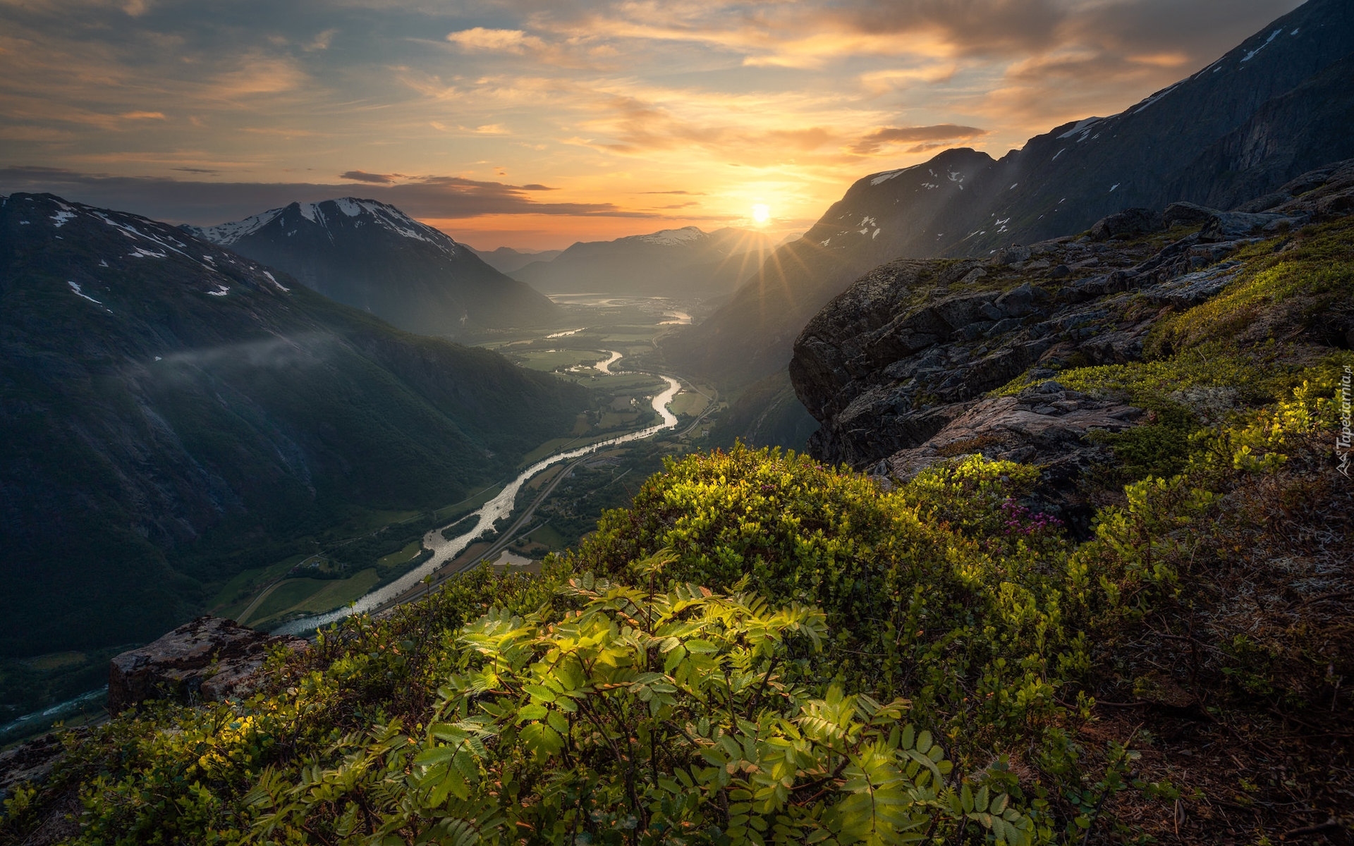 Edytor tapety: Zachód słońca w dolinie Romsdalen