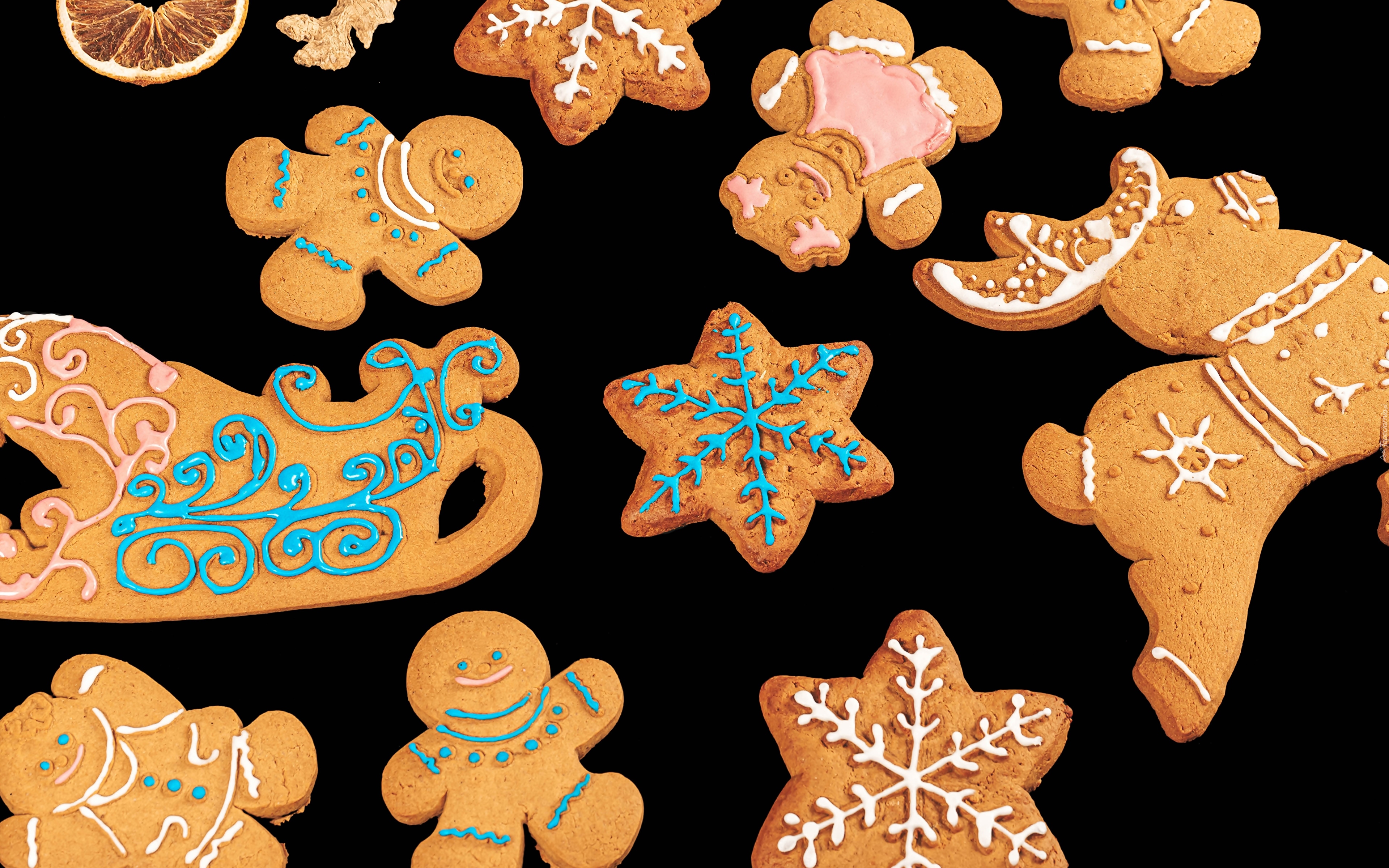 Edytor tapety: Świąteczne pierniczki na czarnym tle