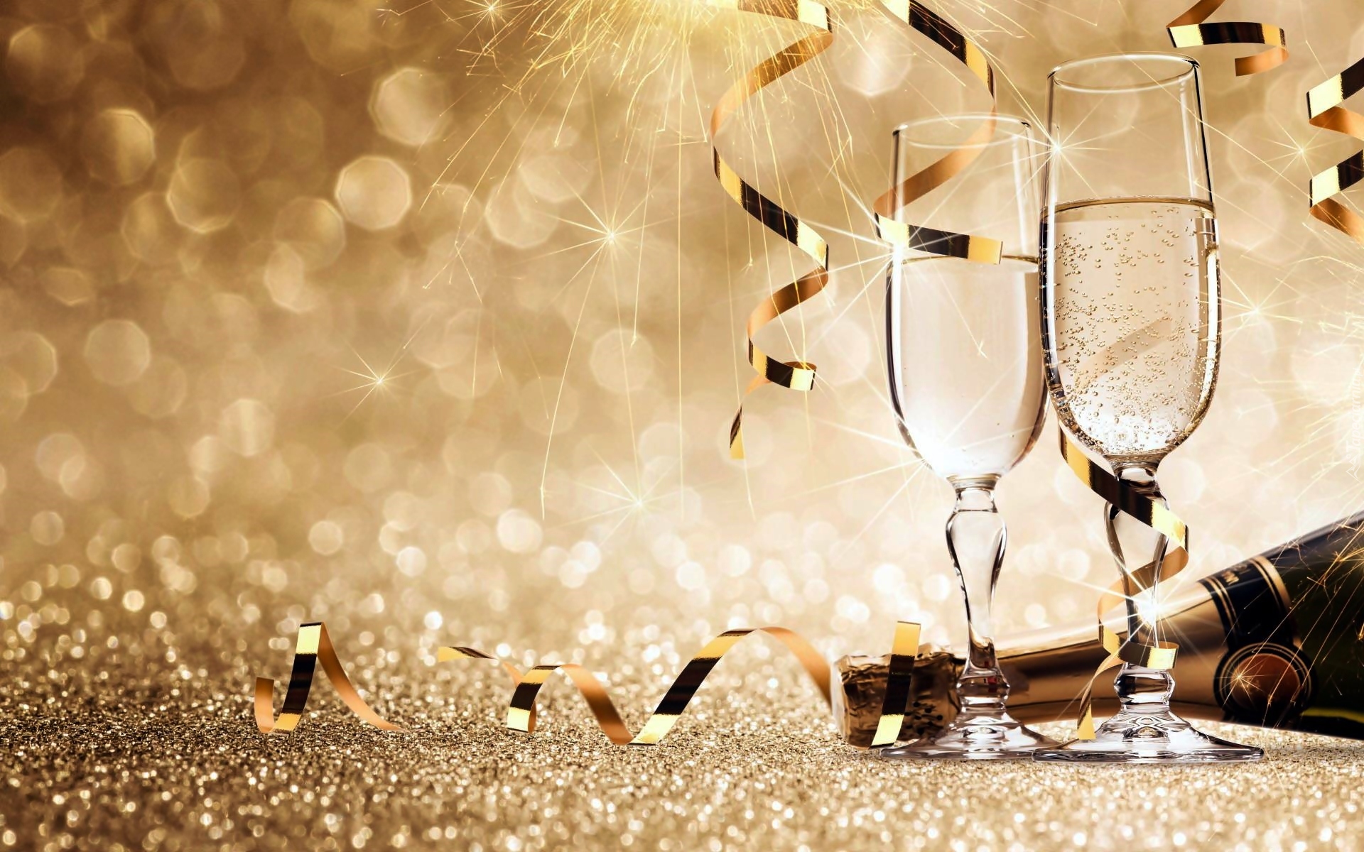 Edytor tapety: Przewrócona butelka przy kieliszkach szampana
