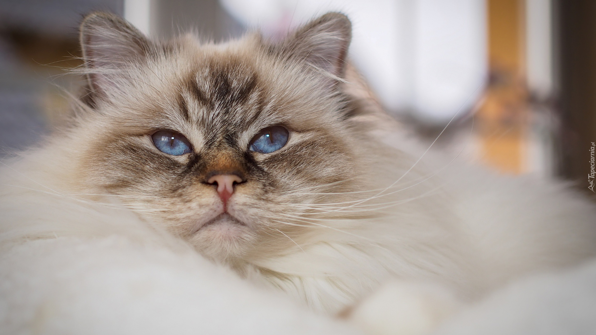 Edytor tapety: Puszysty niebieskooki kot