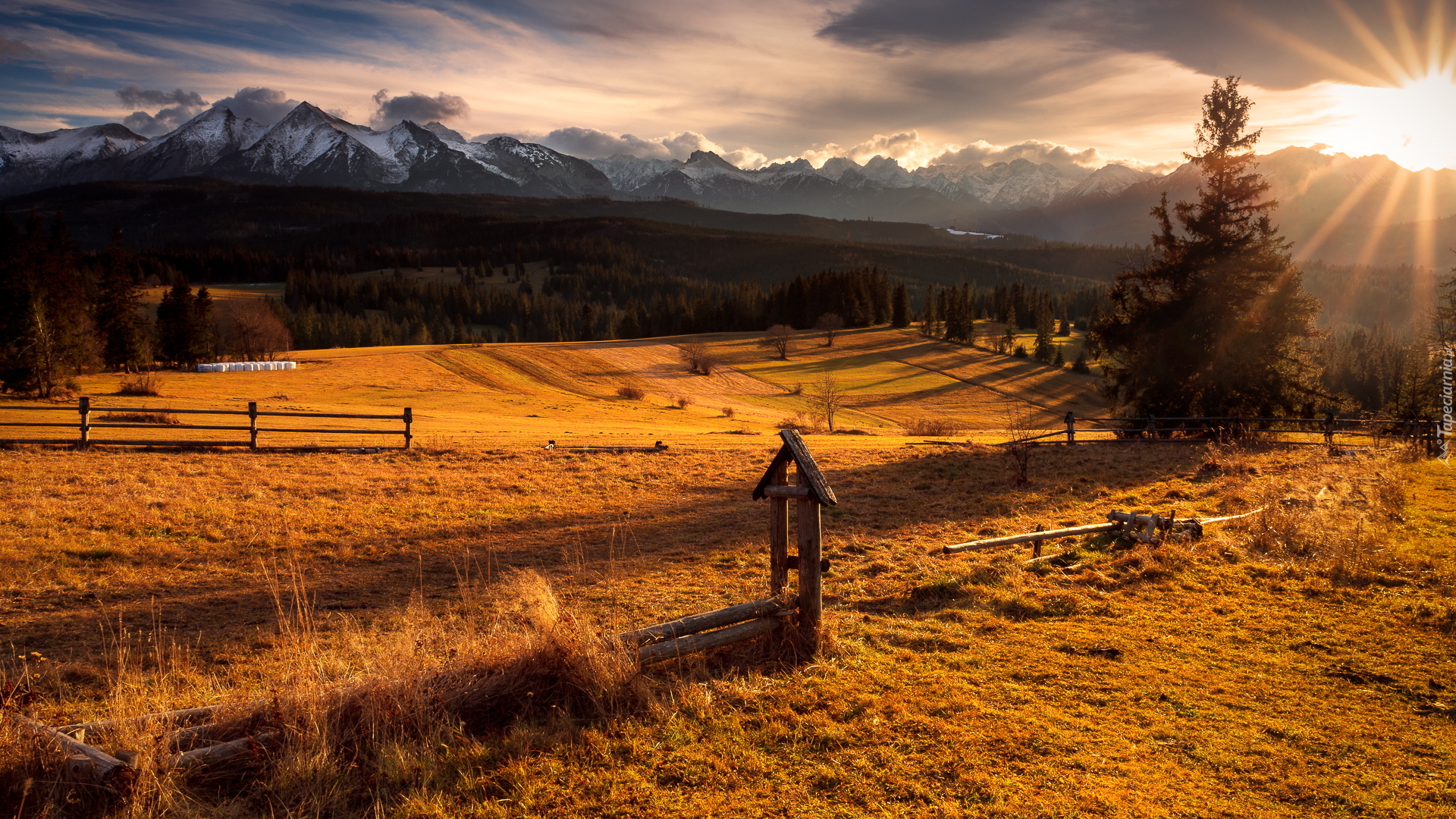 Edytor tapety: Rozświetlona promieniami słońca polana w Tatrach
