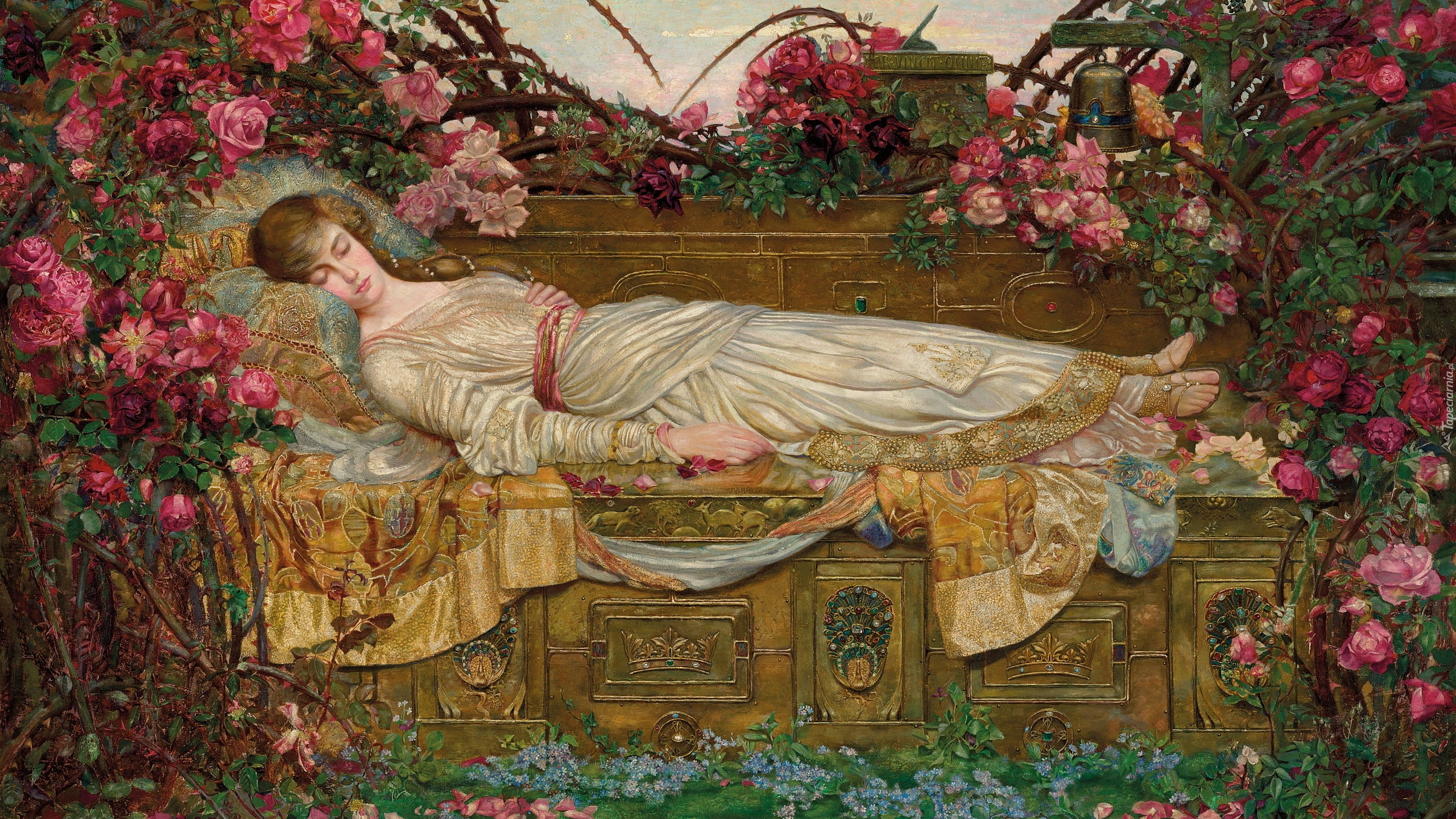 Edytor tapety: Kobieta śpiąca w ogrodzie na obrazie Archibalda Wakleya