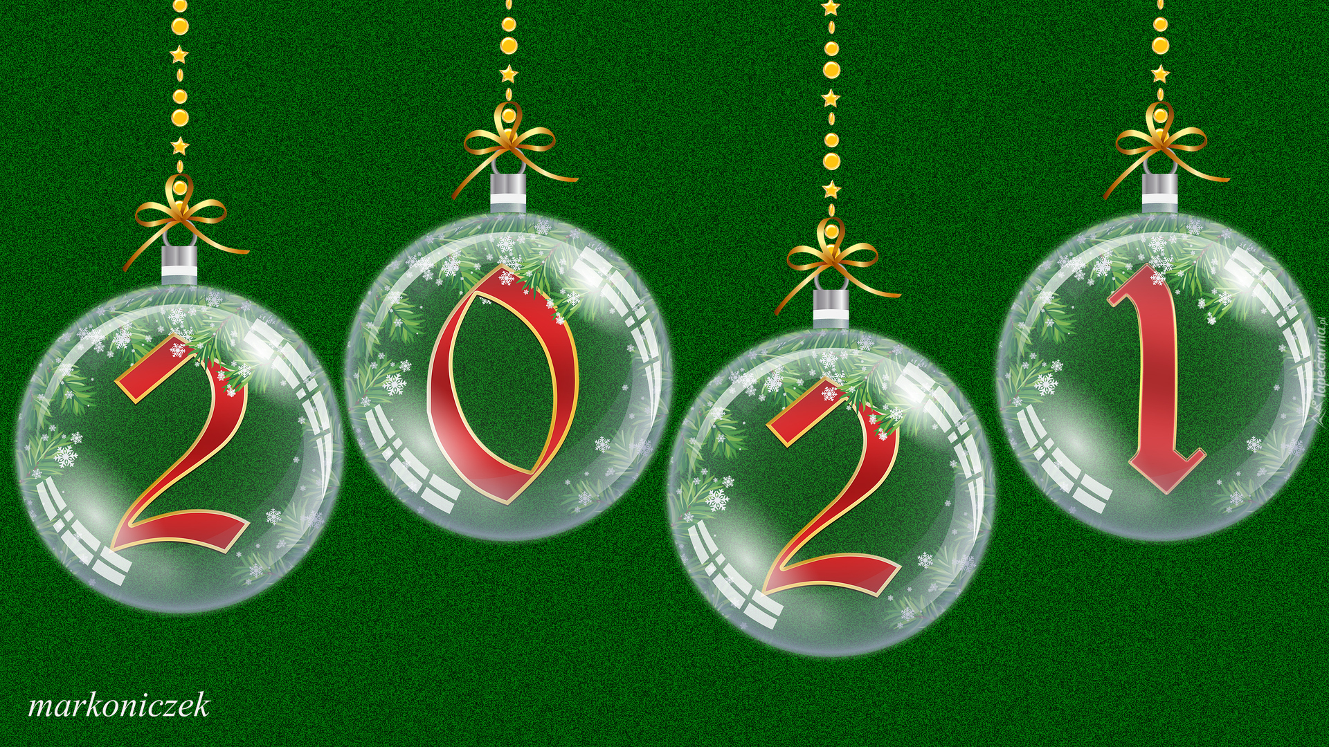 Edytor tapety: Data 2021 w bombkach na zielonym tle