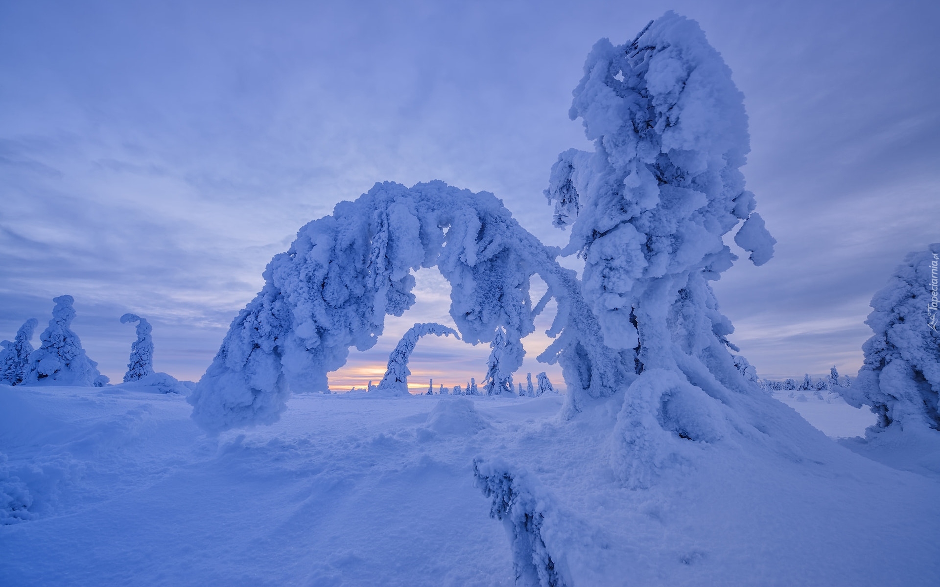 Edytor tapety: Błękitne niebo nad ośnieżonymi drzewami