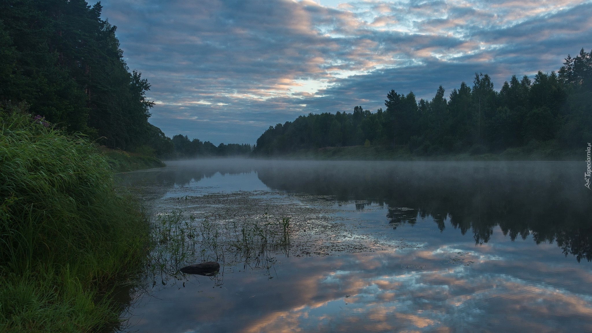 Edytor tapety: Poranna mgła unosząca się nad rzeką