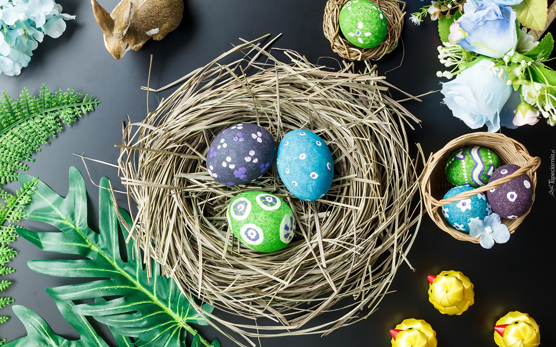 Edytor tapety: Gniazdo z kolorowymi pisankami