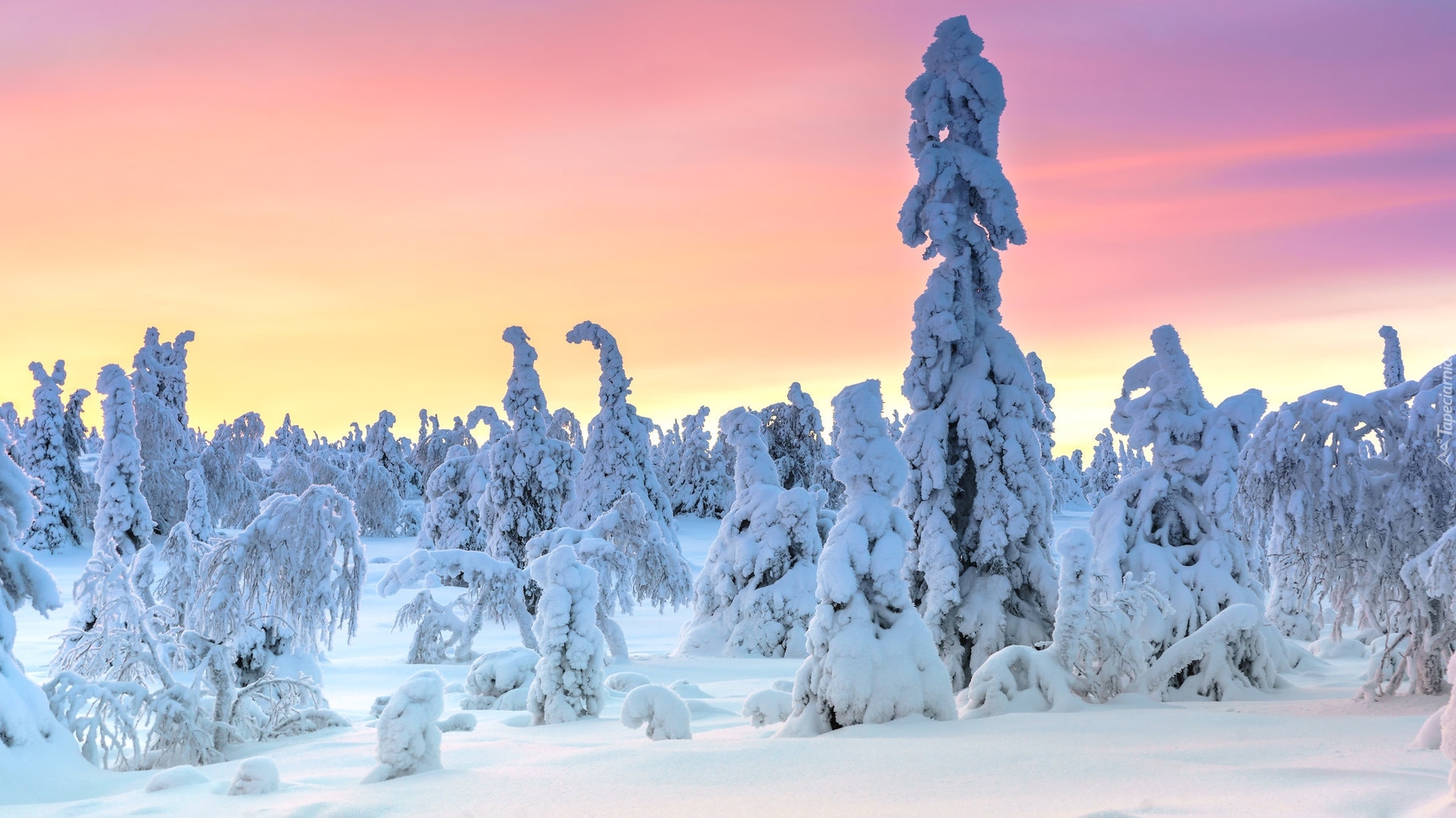 Edytor tapety: Ośnieżone drzewa w Parku Narodowm Riisitunturi w Laponii