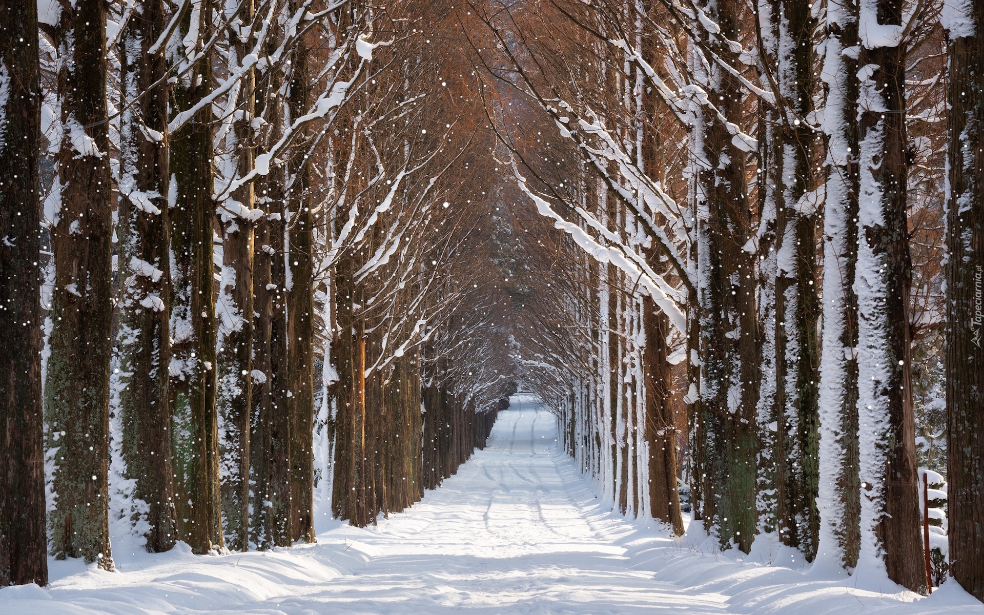 Edytor tapety: Drzewa przy zaśnieżonej drodze