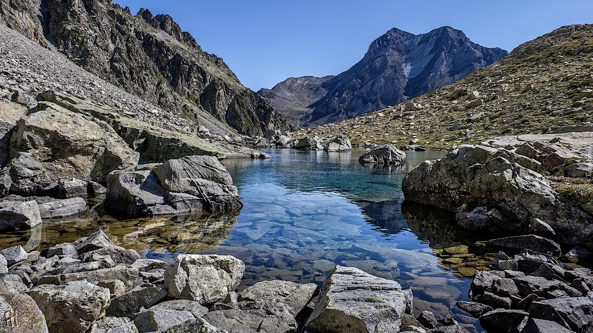 Edytor tapety: Kamienie i skały na brzegu górskiego jeziora