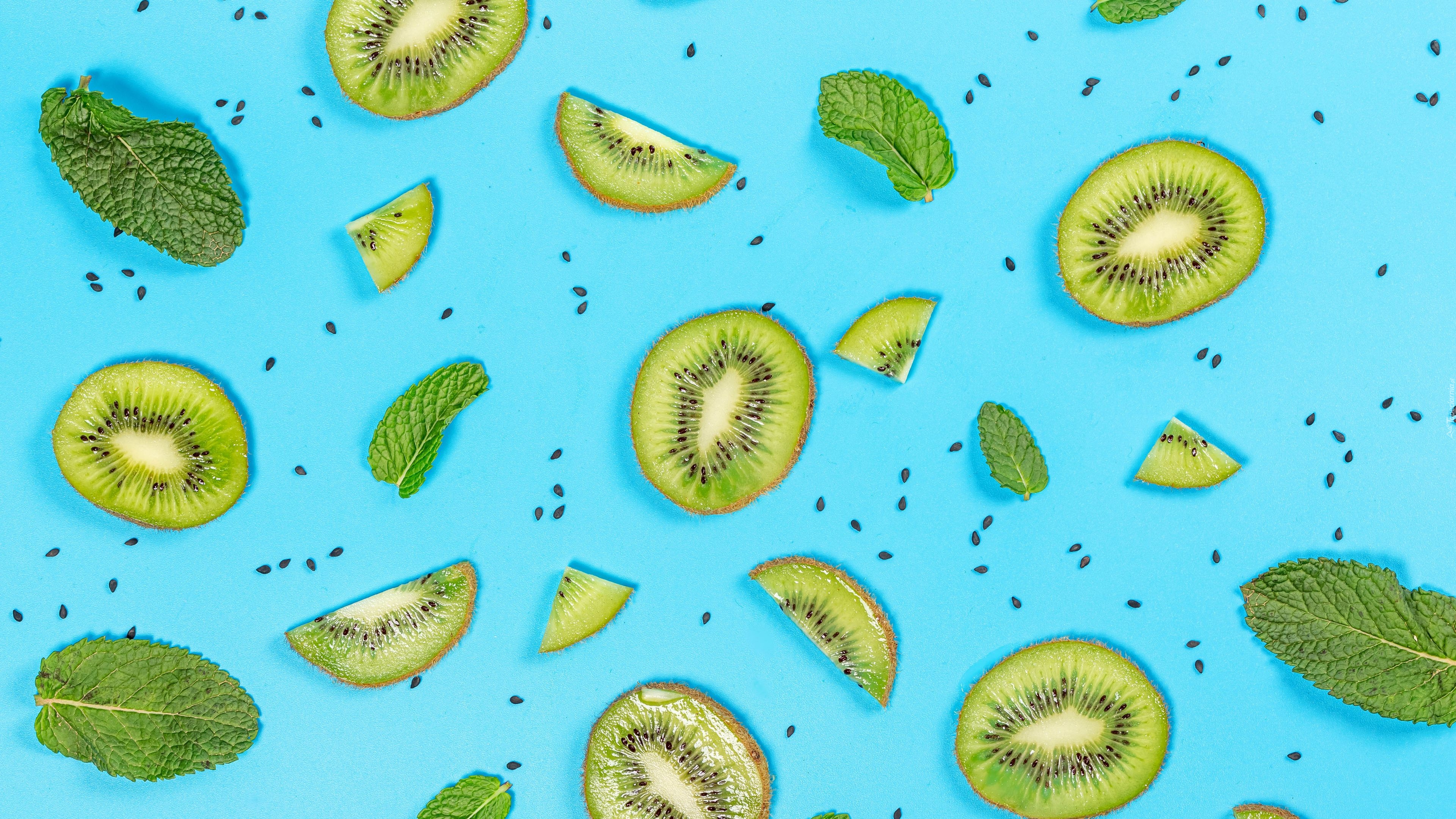 Edytor tapety: Plastry kiwi na niebieskim tle