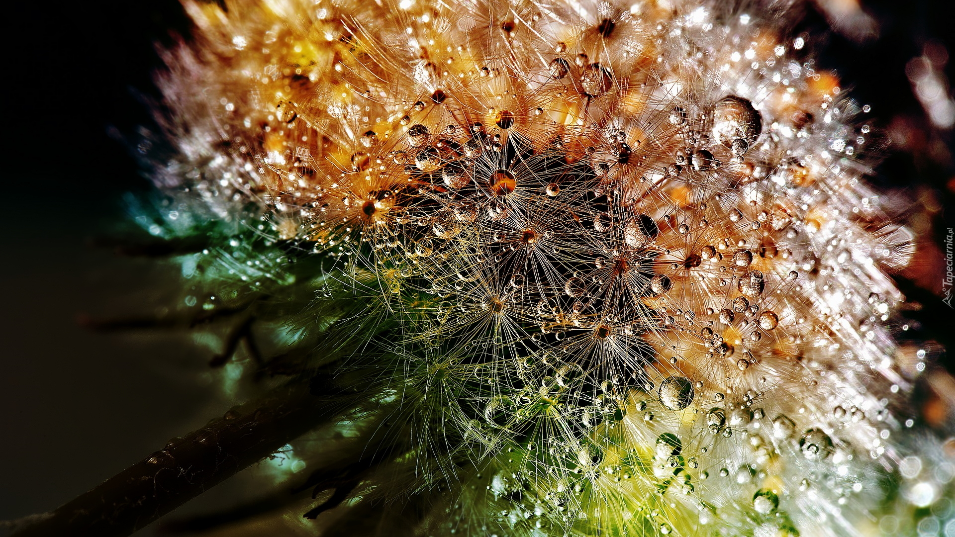 Edytor tapety: Mniszek lekarski z kropelkami rosy