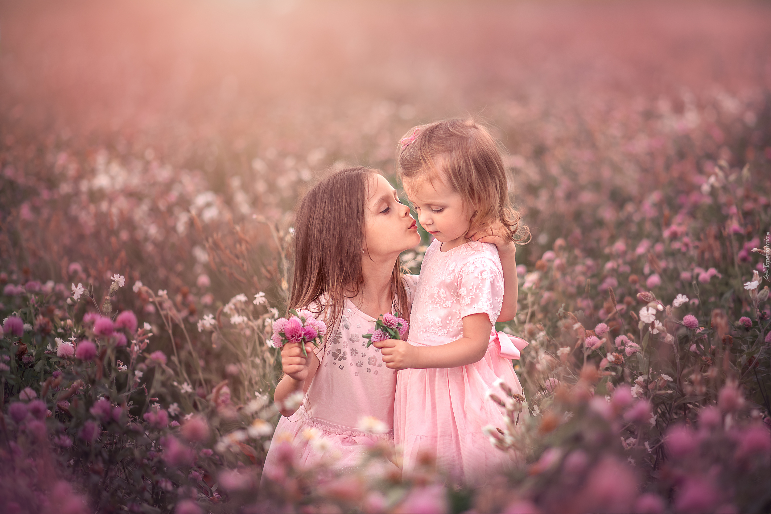 Edytor tapety: Dziewczynki wśród koniczyny na łące