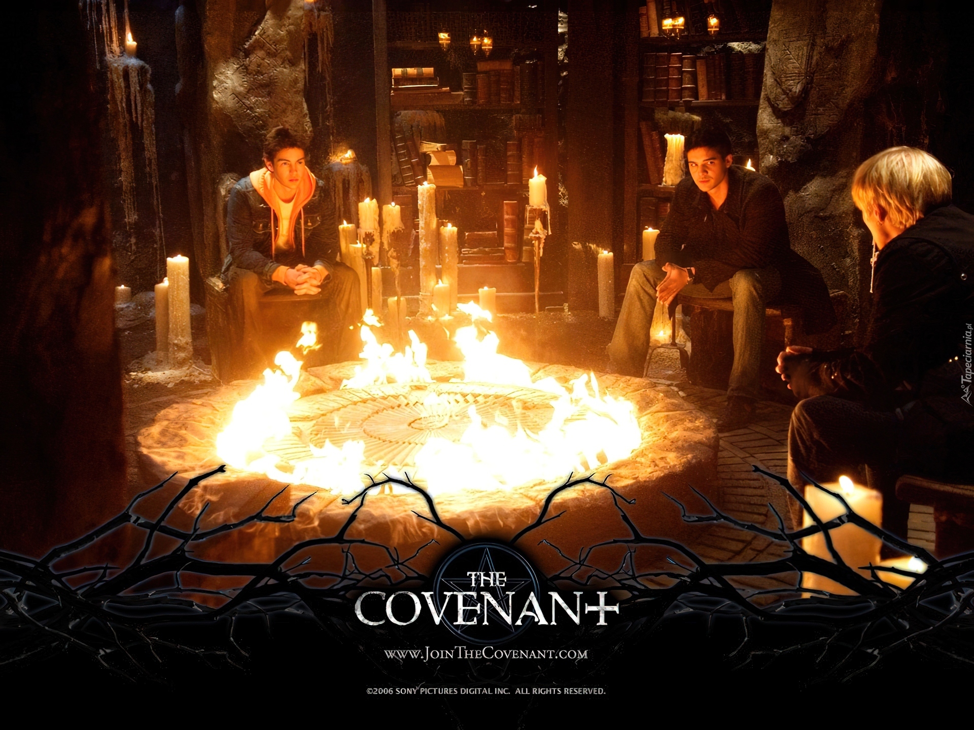 Edytor tapety: The Covenant, świece, ogień, księgi, chłopacy