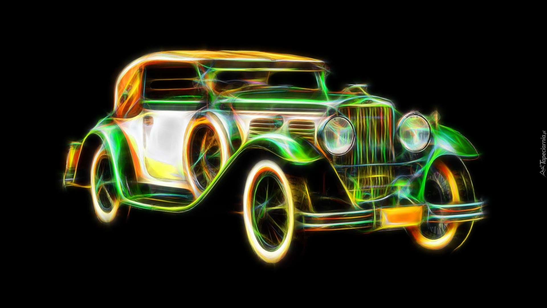 Edytor tapety: Samochód na ciemnym tle w grafice fractalius