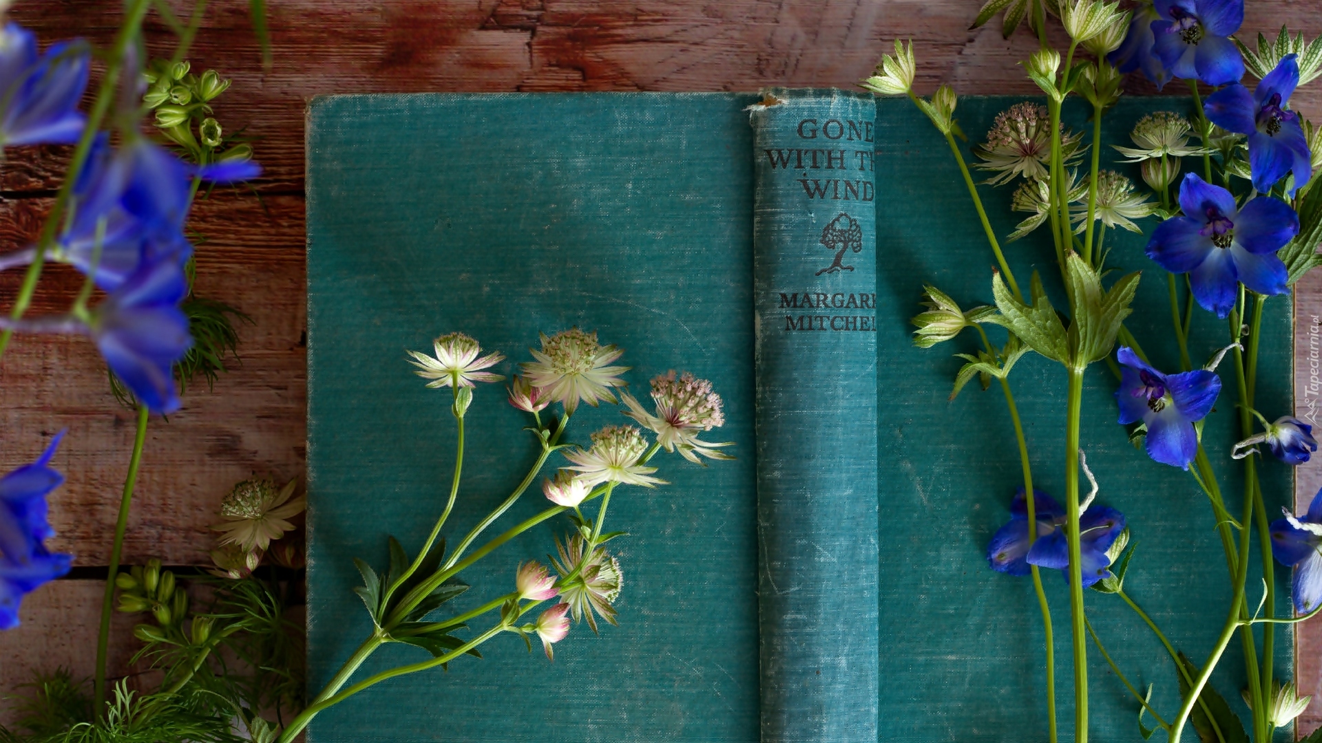 Edytor tapety: Kwiaty na okładce otwartej książki