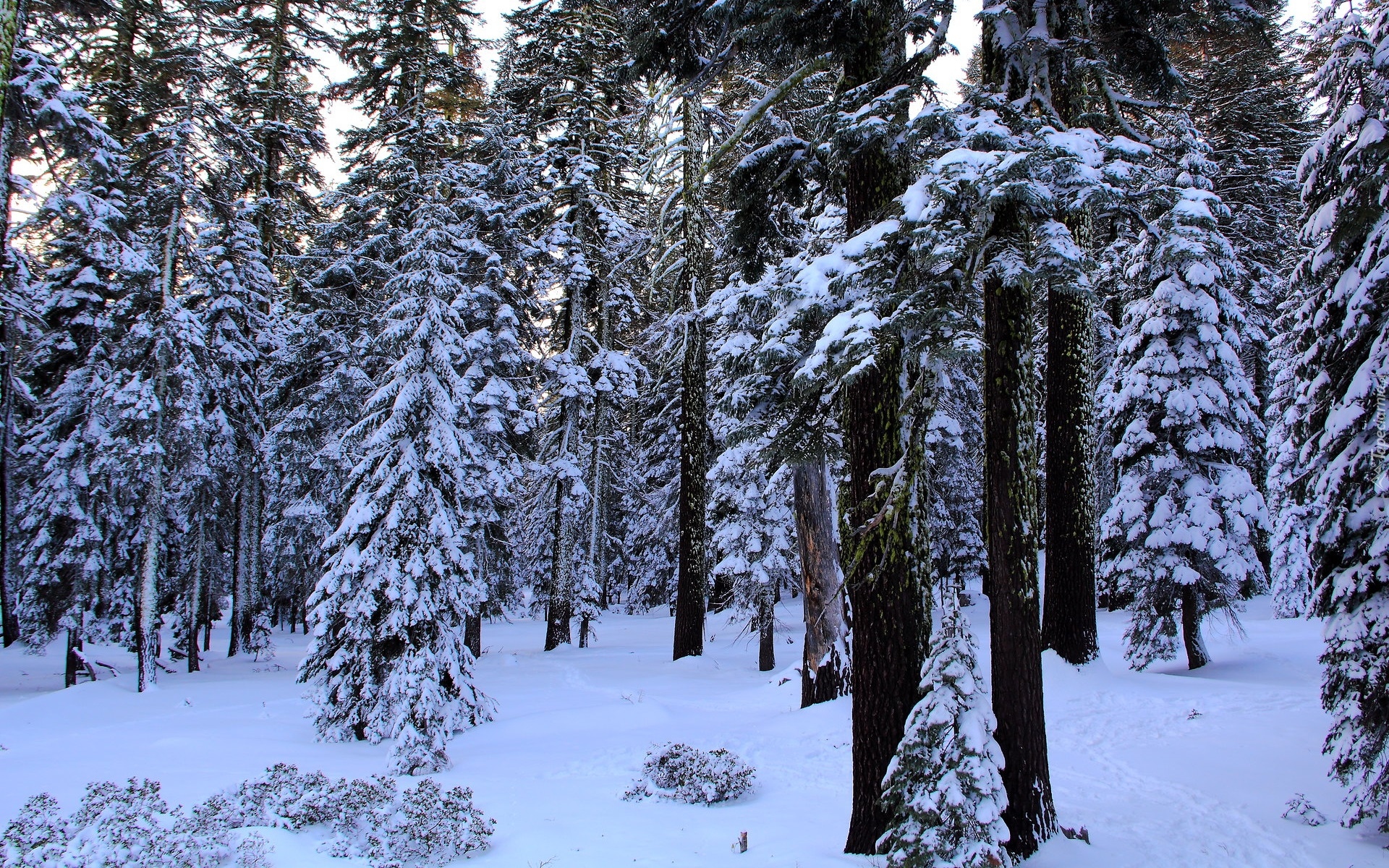 Edytor tapety: Świerkowy las zimową porą