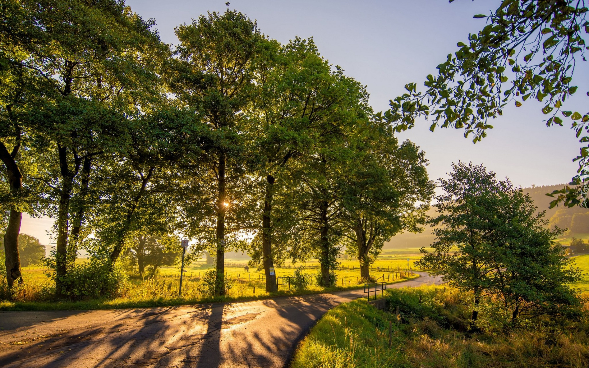 Edytor tapety: Zielone drzewa wzdłuż drogi