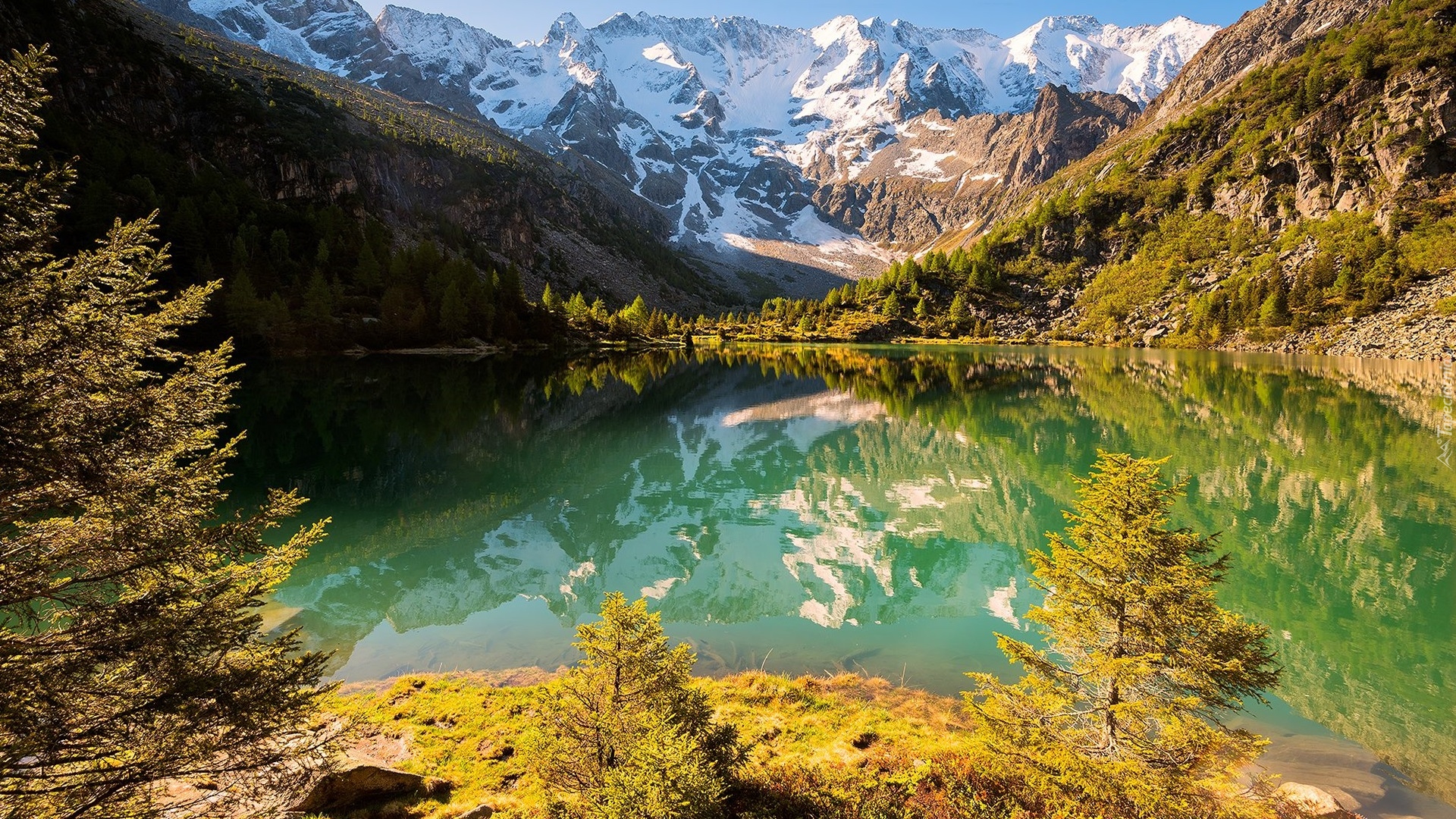 Edytor tapety: Widok znad jeziora Aviolo Lake na ośnieżone góry