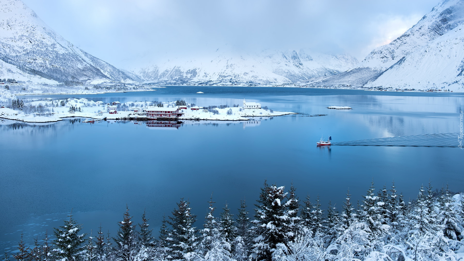 Edytor tapety: Norweska wyspa Austvagsoya zimową porą