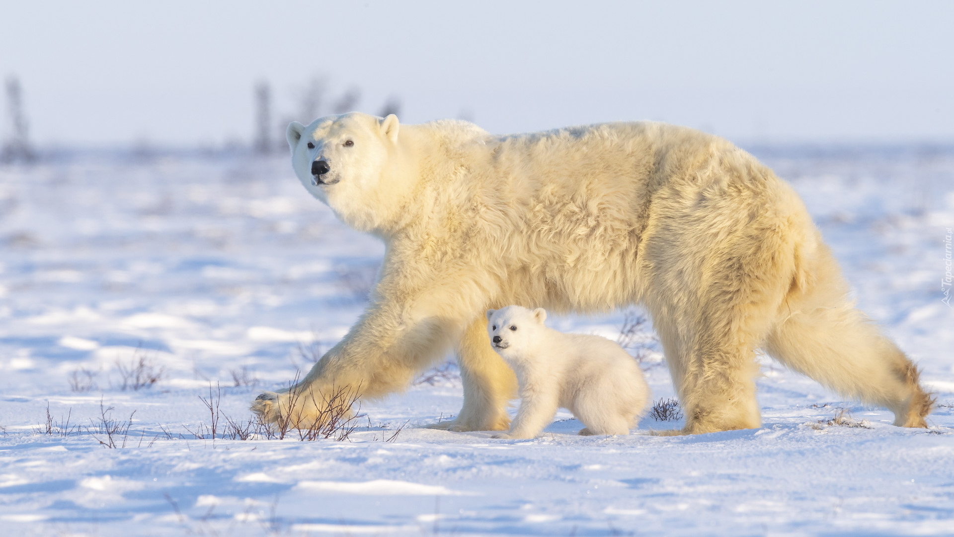 Edytor tapety: Niedźwiedzica z niedźwiadkiem polarnym