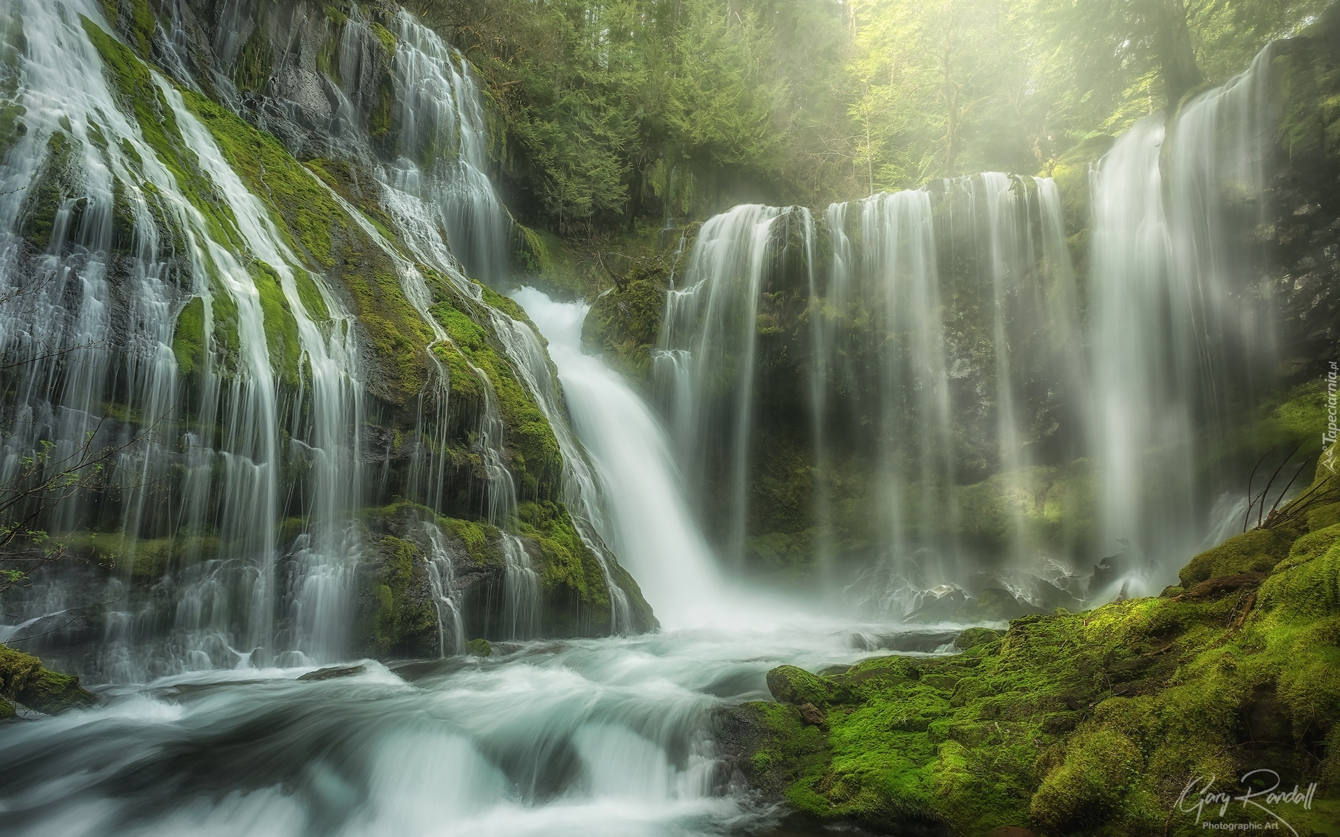Edytor tapety: Wodospad Panther Creek Falls na omszonych skałach