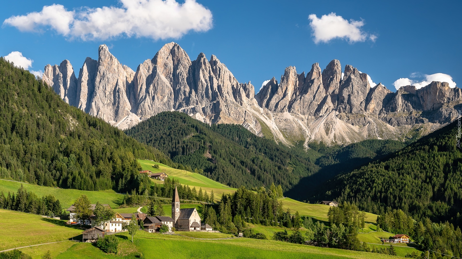 Edytor tapety: Dolina Val di Funes na tle masywu Odle