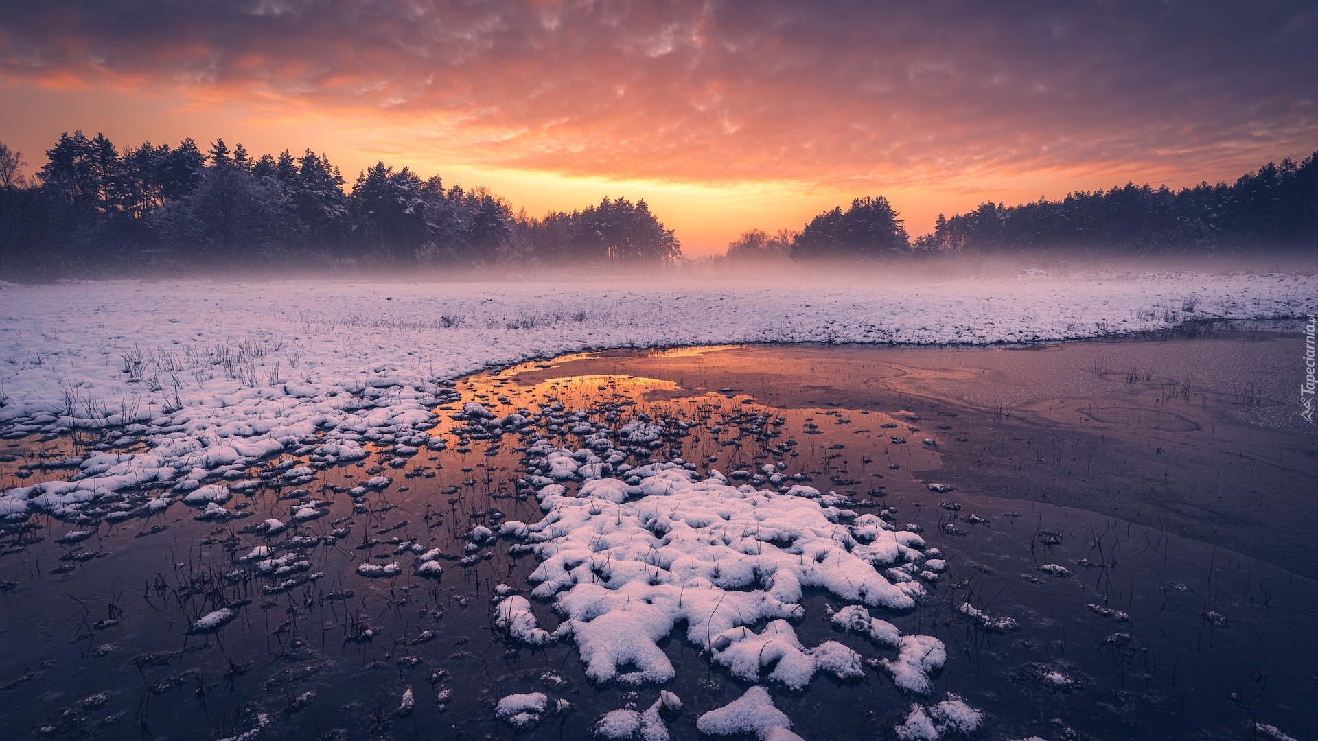 Edytor tapety: Mgła nad ośnieżonym jeziorem