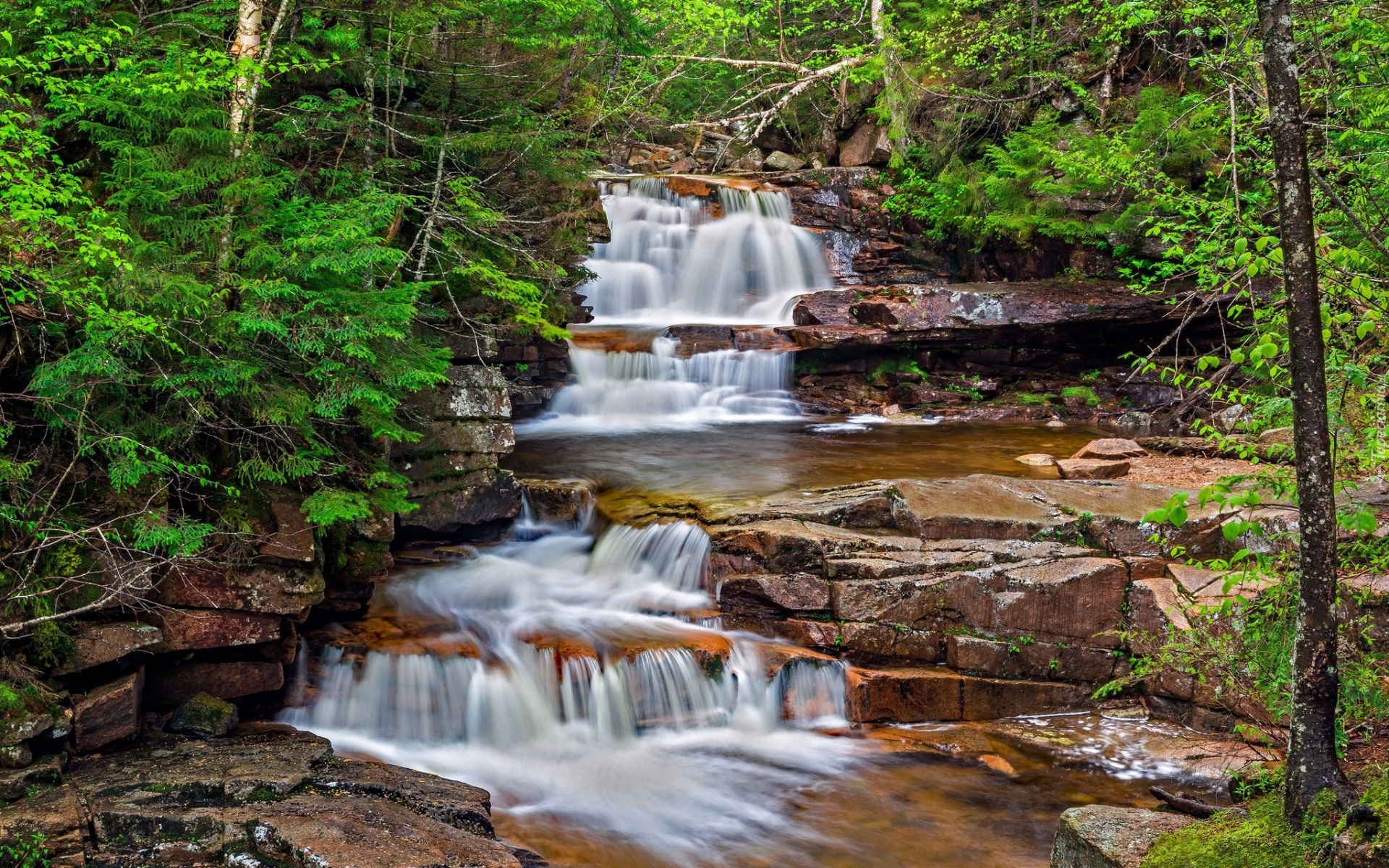 Edytor tapety: Wodospad kaskadowy w zielonym lesie