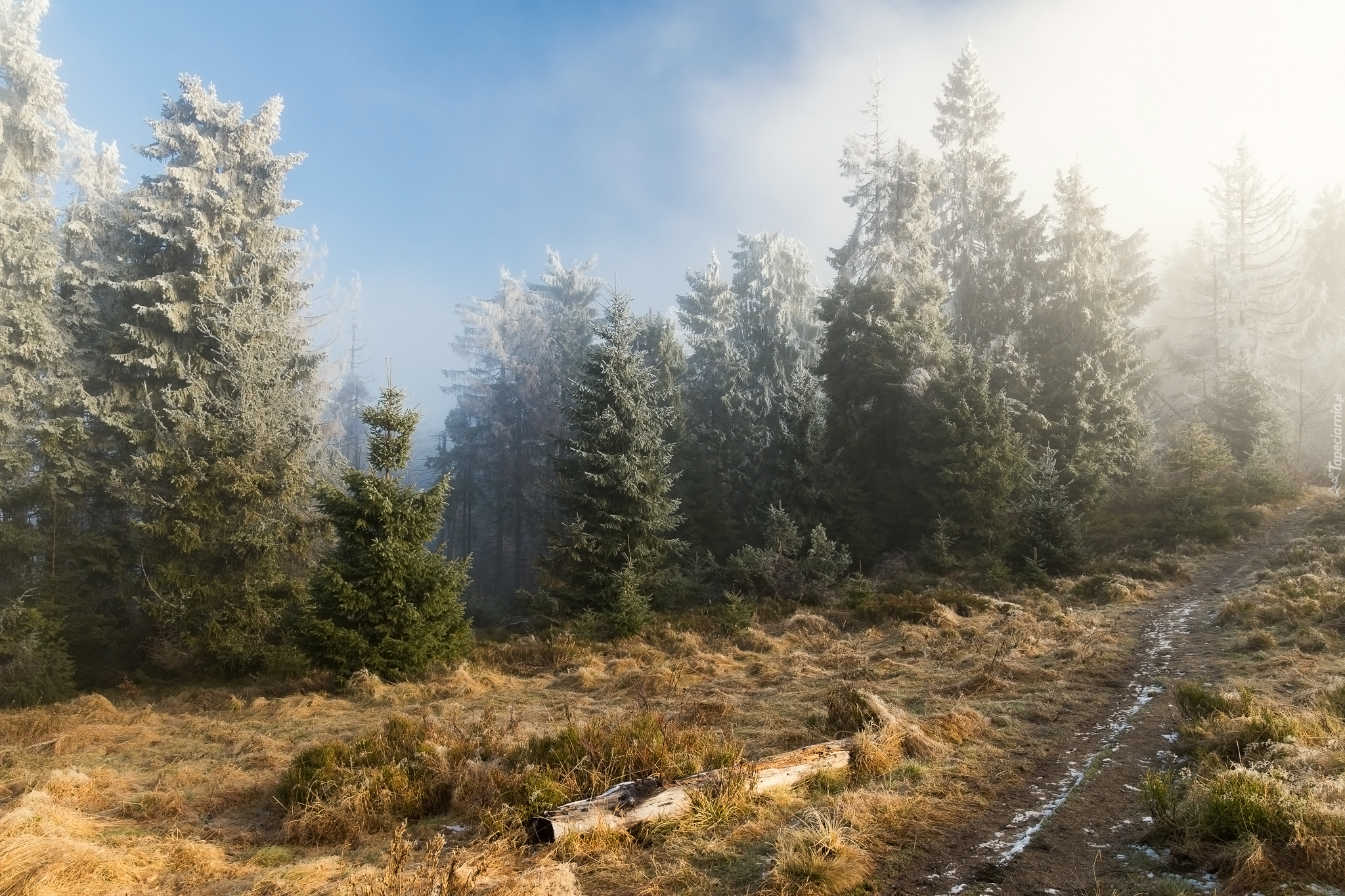 Edytor tapety: Oszronione drzewa przy polnej drodze