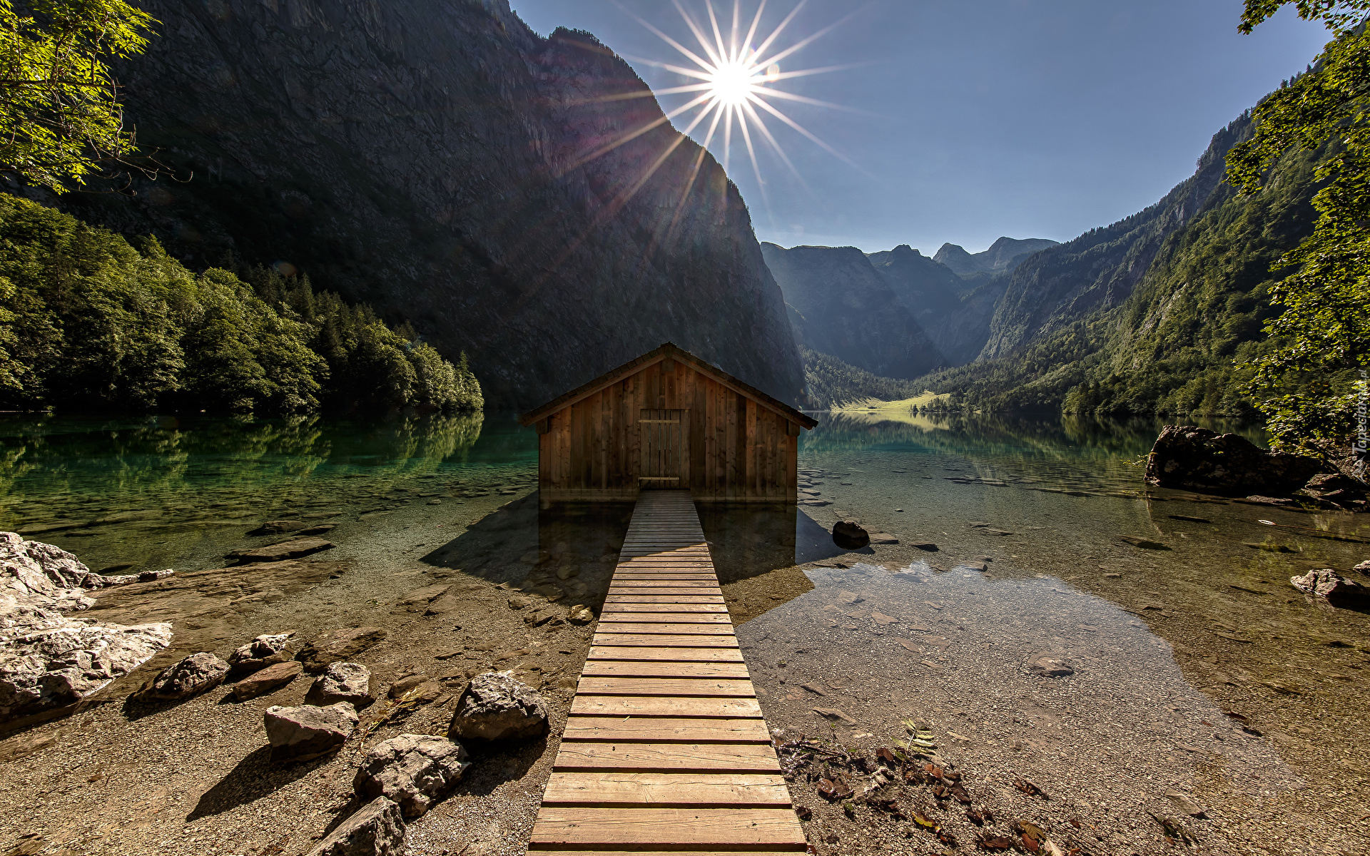 Edytor tapety: Drewniana chata na jeziorze Obersee