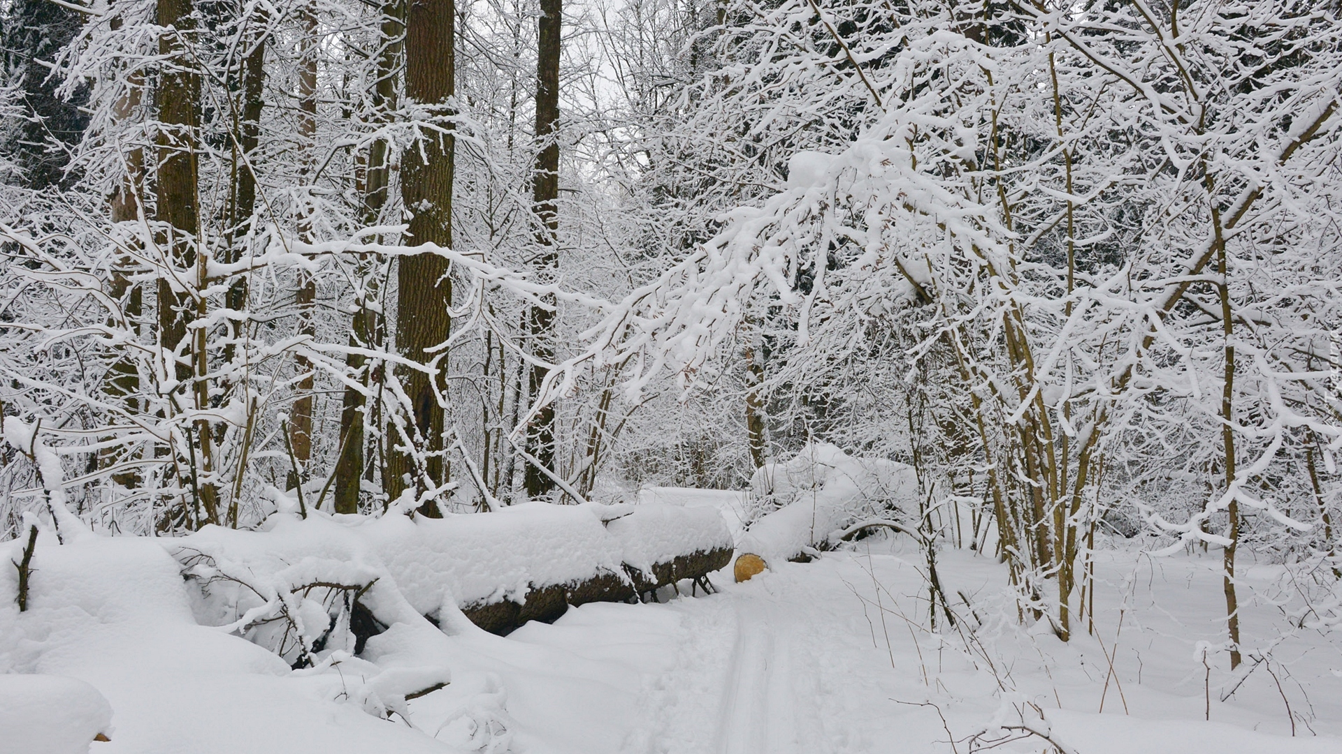 Edytor tapety: Powalone kłody w ośnieżonym lesie
