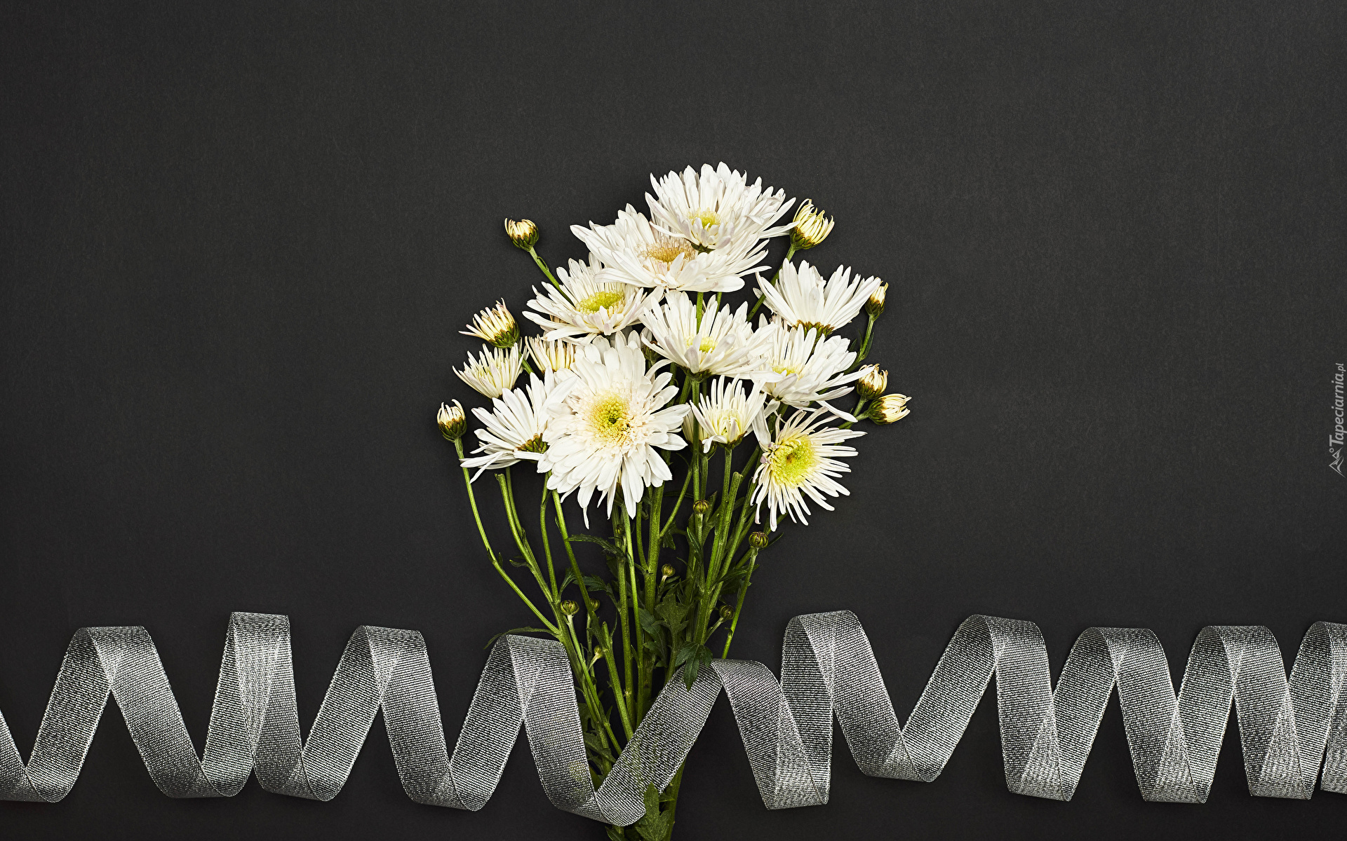 Edytor tapety: Wstążka na gałązce białych chryzantem