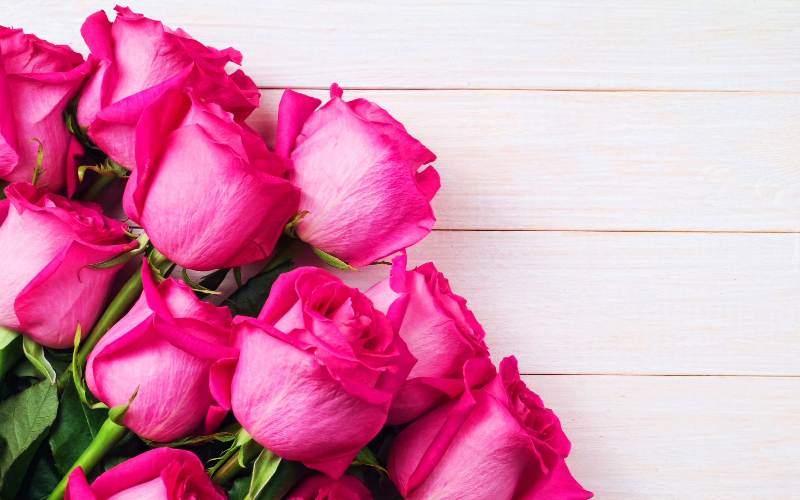 Edytor tapety: Różowe róże na białych deskach