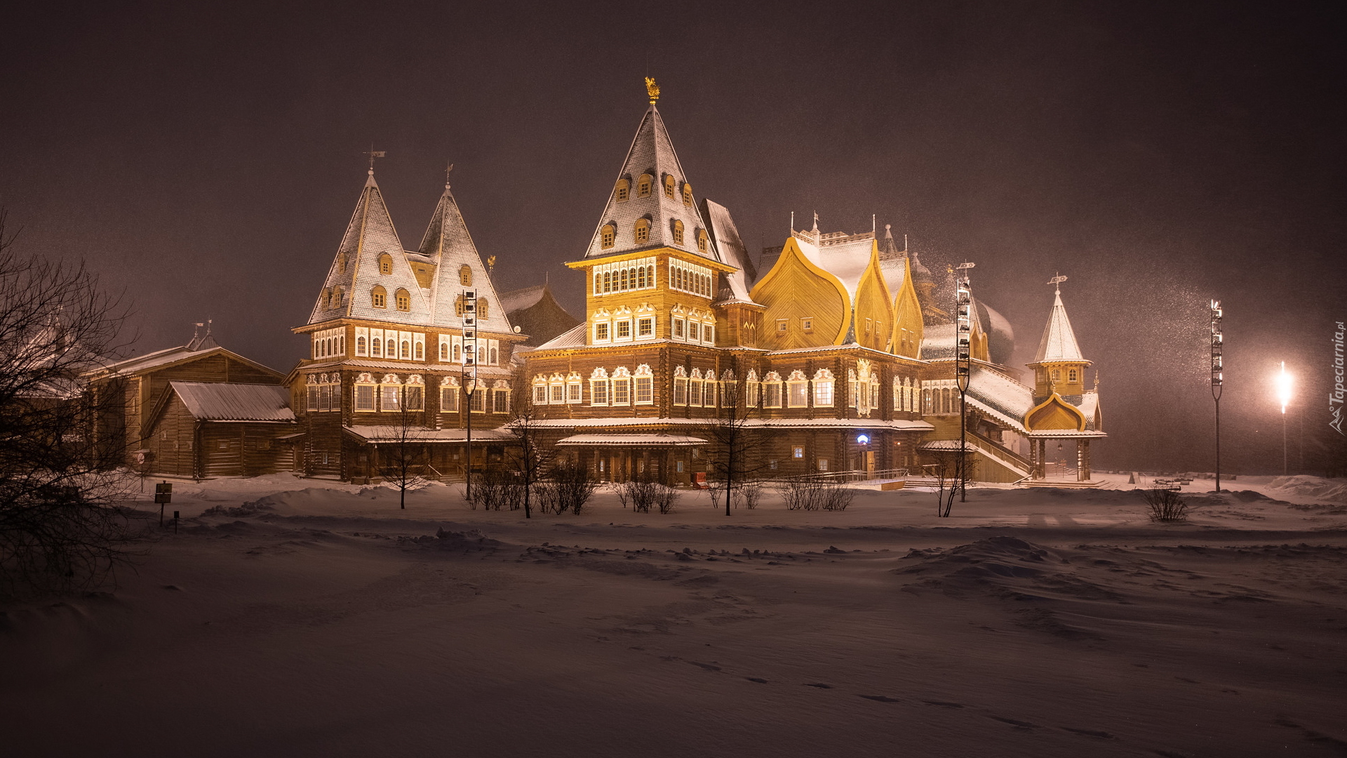 Edytor tapety: Pałac cara Aleksieja Michajłowicza w Kolomenskoye zimową porą