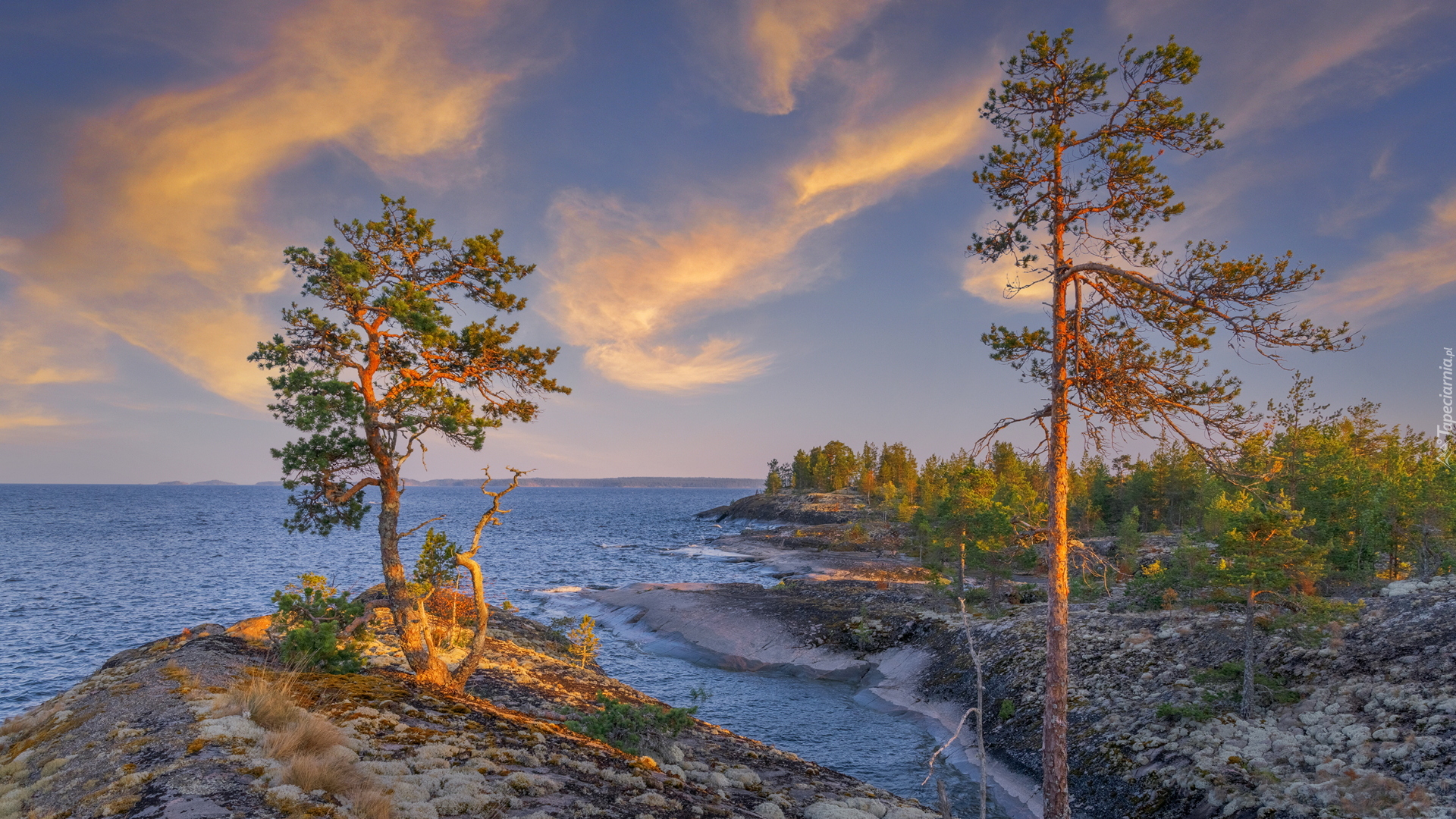 Edytor tapety: Skały i drzewa nad Jeziorem Ładoga w Karelii