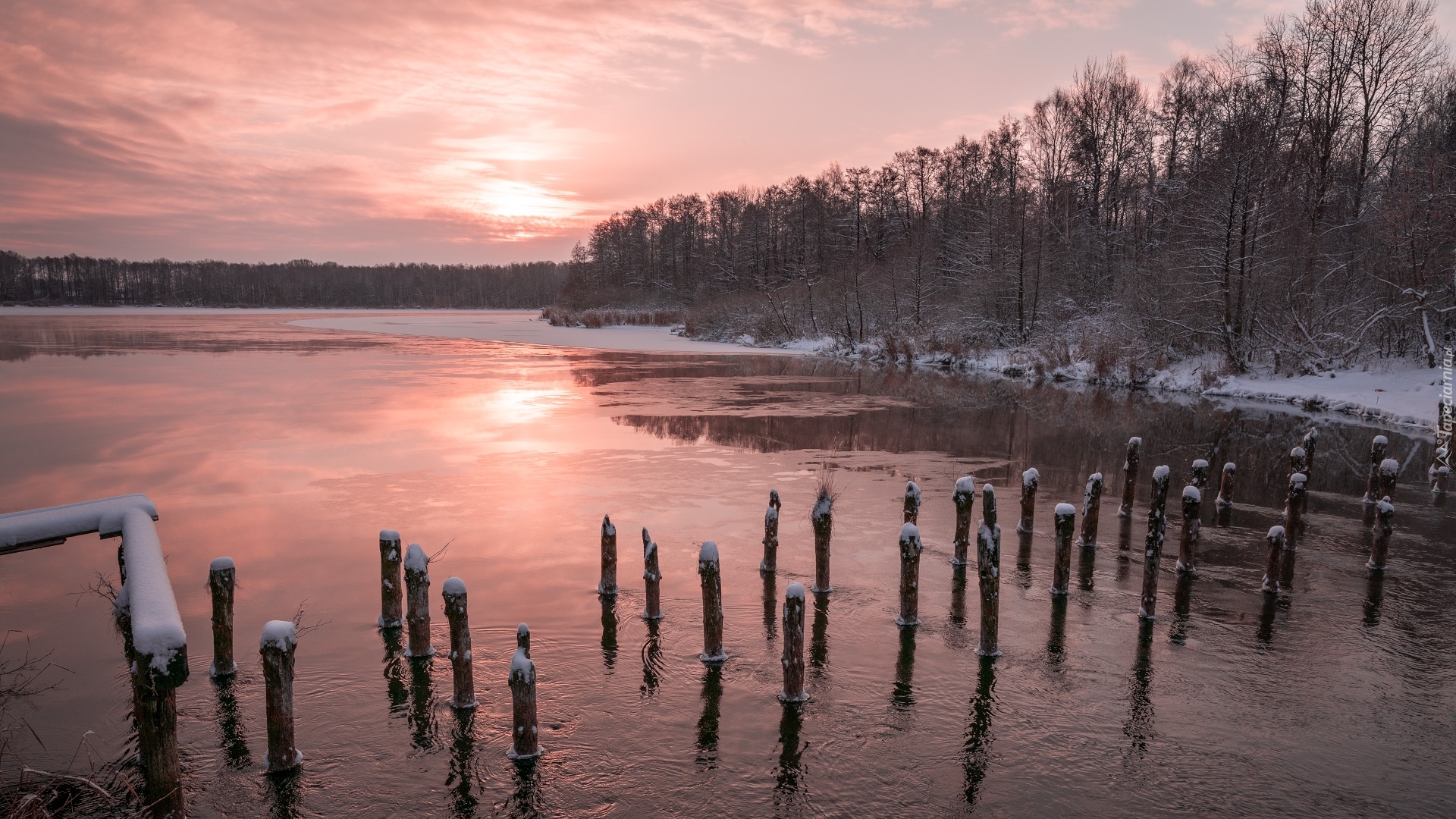 Edytor tapety: Pale w oblodzonym jeziorze