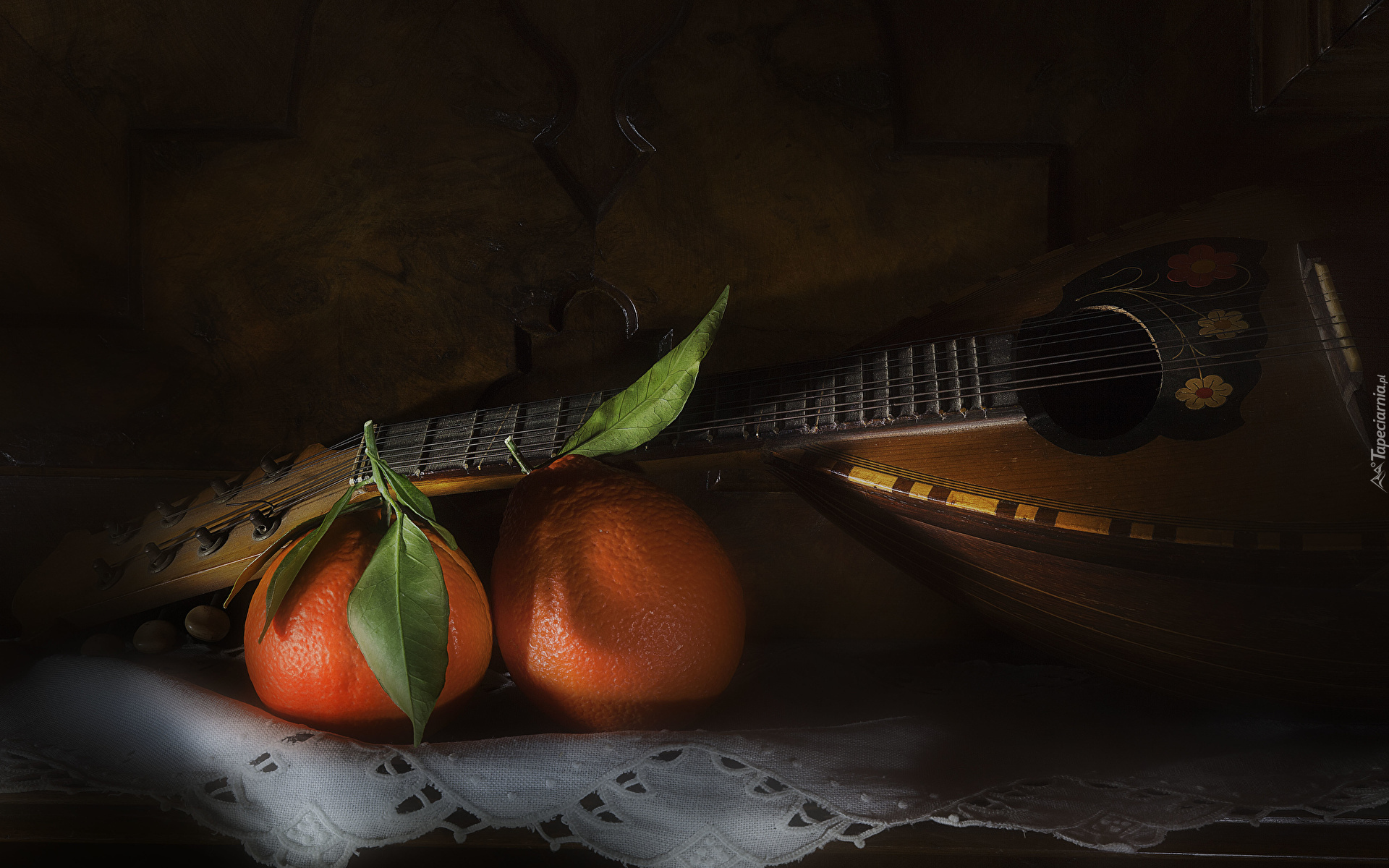 Edytor tapety: Dwie pomarańcze obok mandoliny