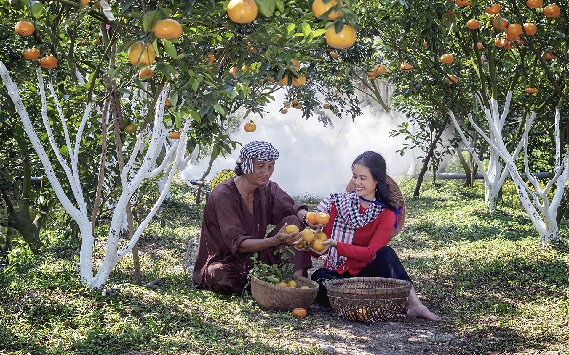 Edytor tapety: Ludzie zbierający owoce w sadzie