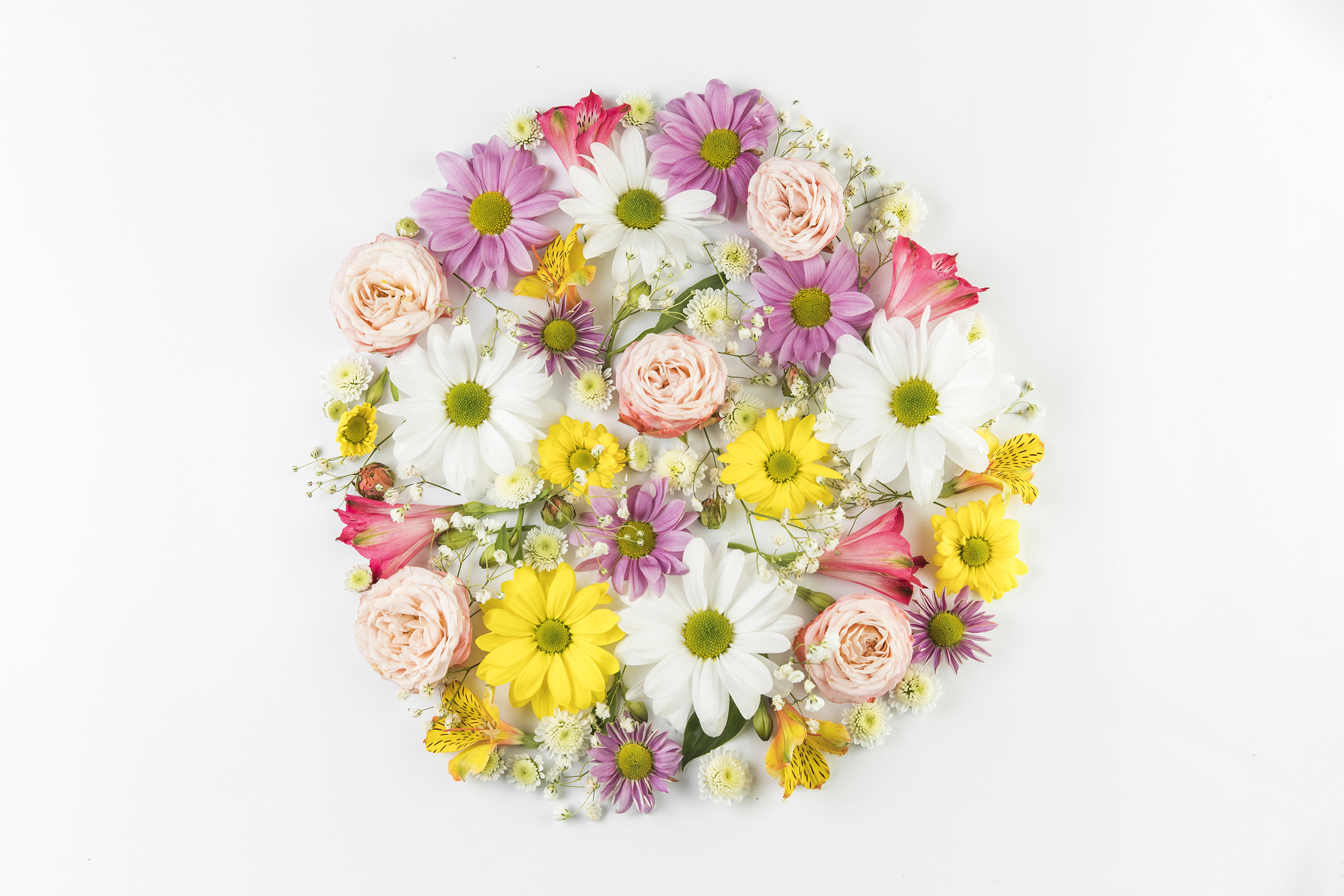 Edytor tapety: Koło z różnych kolorowych kwiatów