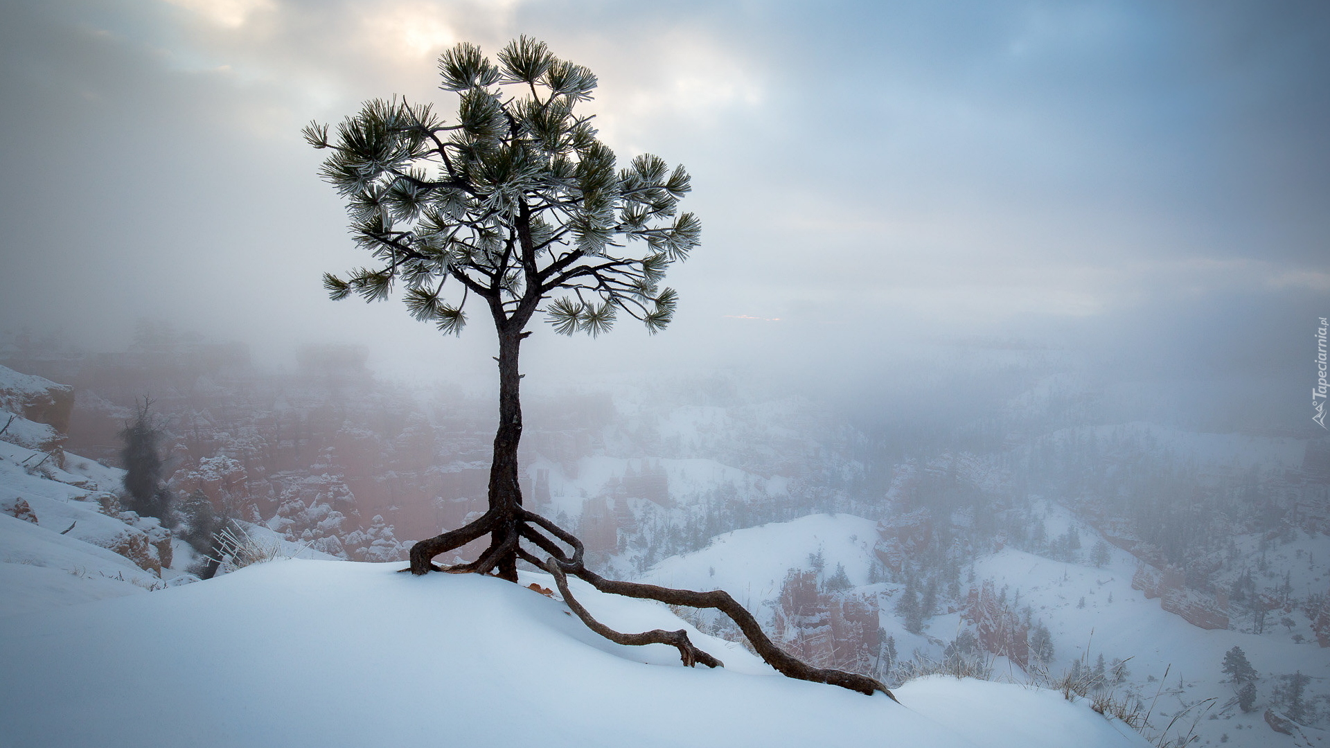 Edytor tapety: Sosna na wzgórzu nad zamgloną doliną