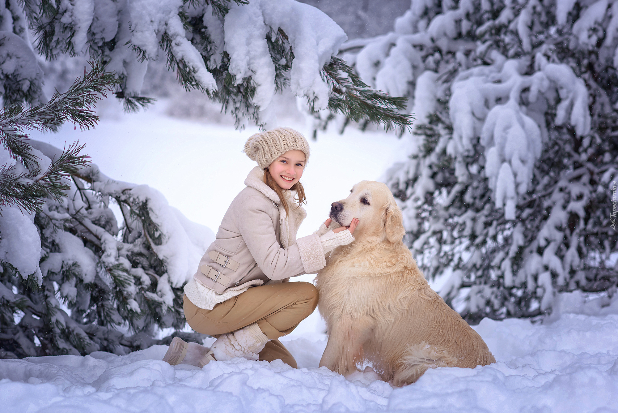 Edytor tapety: Dziewczynka z golden retrieverem