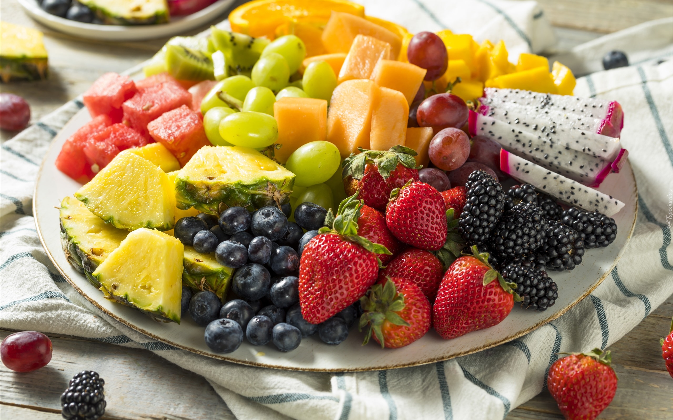 Edytor tapety: Różne owoce na talerzu