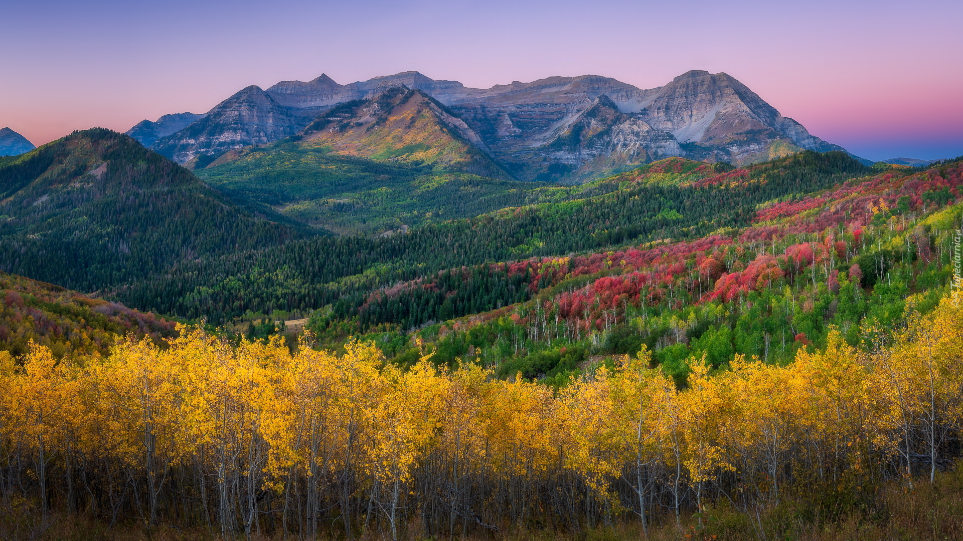 Edytor tapety: Jesienne drzewa na tle góry Mount Timpanogos