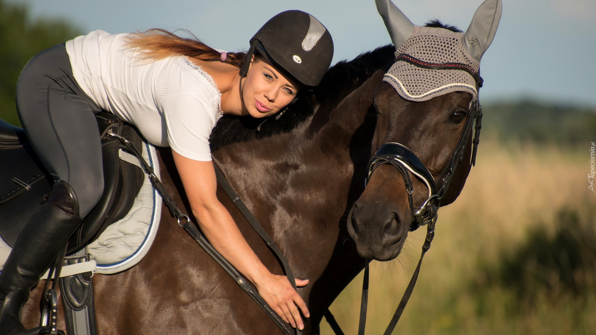 Edytor tapety: Kobieta w stroju jeździeckim na koniu