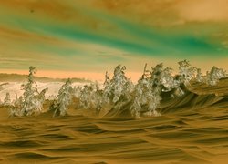Edytor tapety: Zaśnieżone drzewa w zaspach śniegu