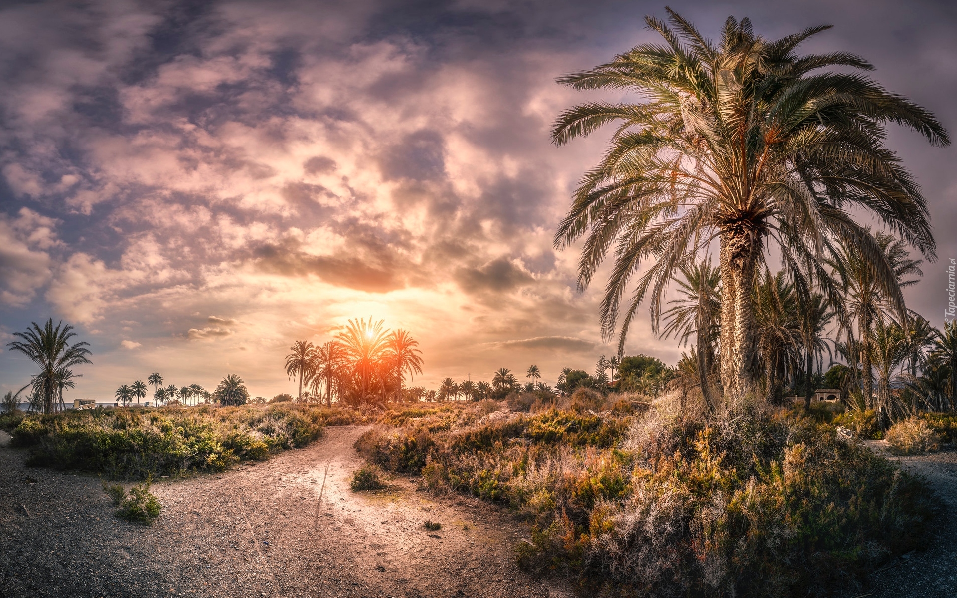 Edytor tapety: Palmy przy drodze na plażę Roquetas w Hiszpanii