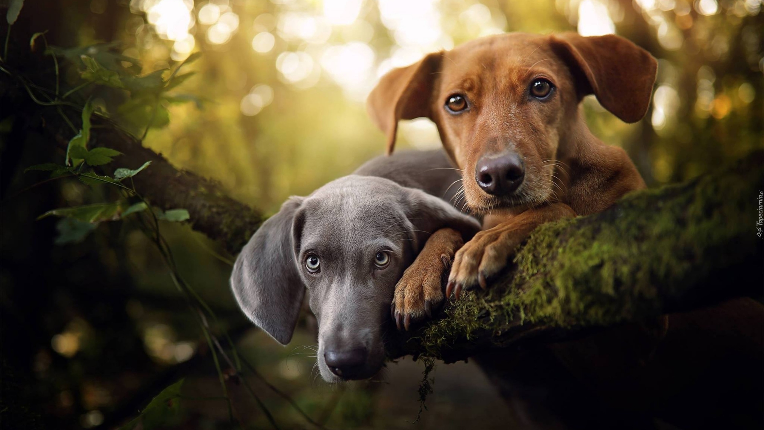 Edytor tapety: Wyżeł weimarski i brązowy kundelek