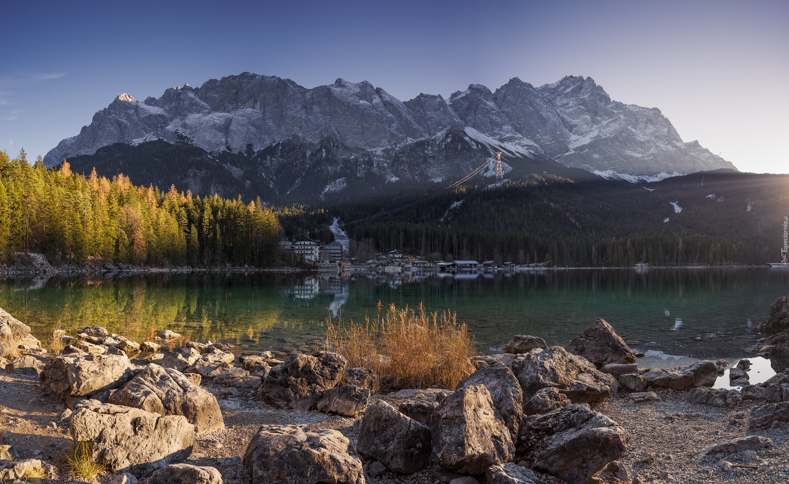 Edytor tapety: Jezioro Eibsee i pasmo górskie Karwendel w tle