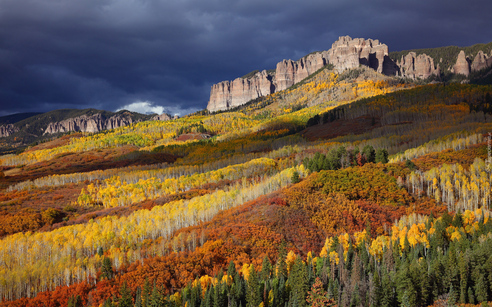 Edytor tapety: Kolorowe jesienne drzewa w górach San Juan